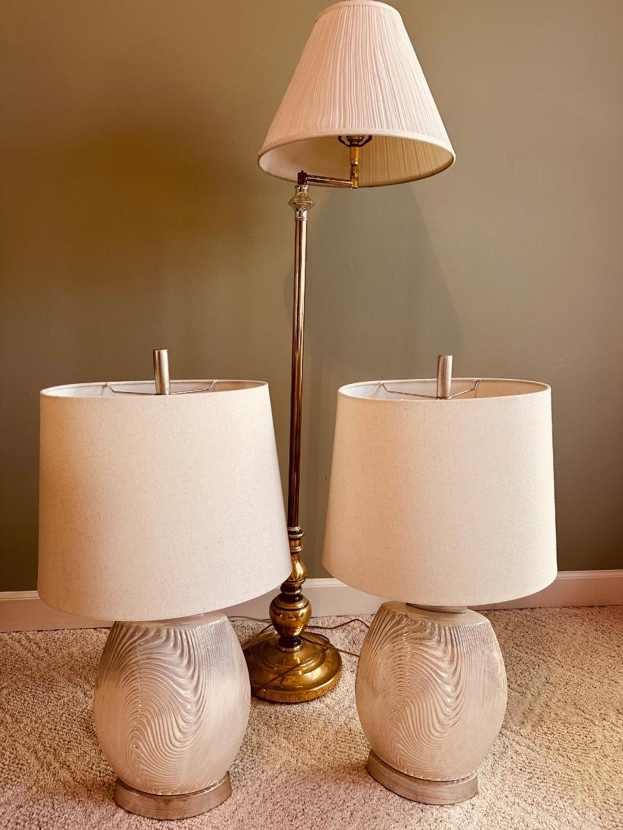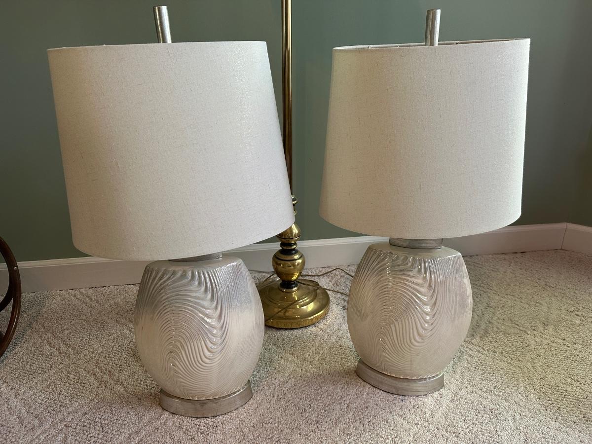 Pair shell design shimmer finish lamps 31" tall, Brass floor lamp 56" Tall