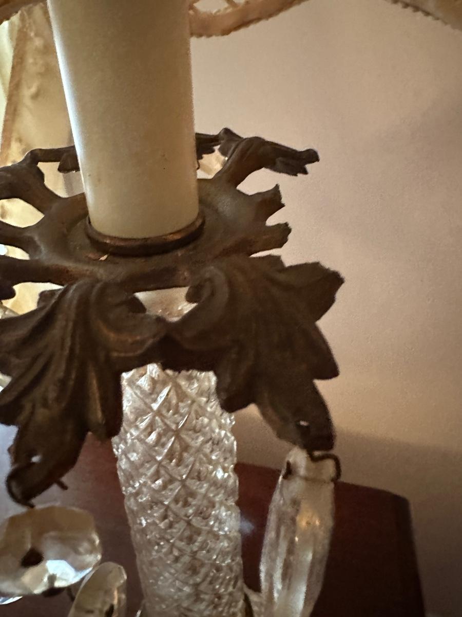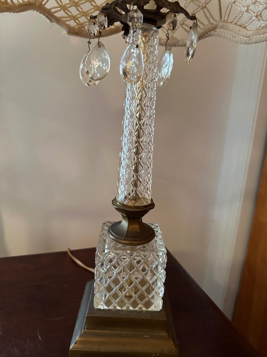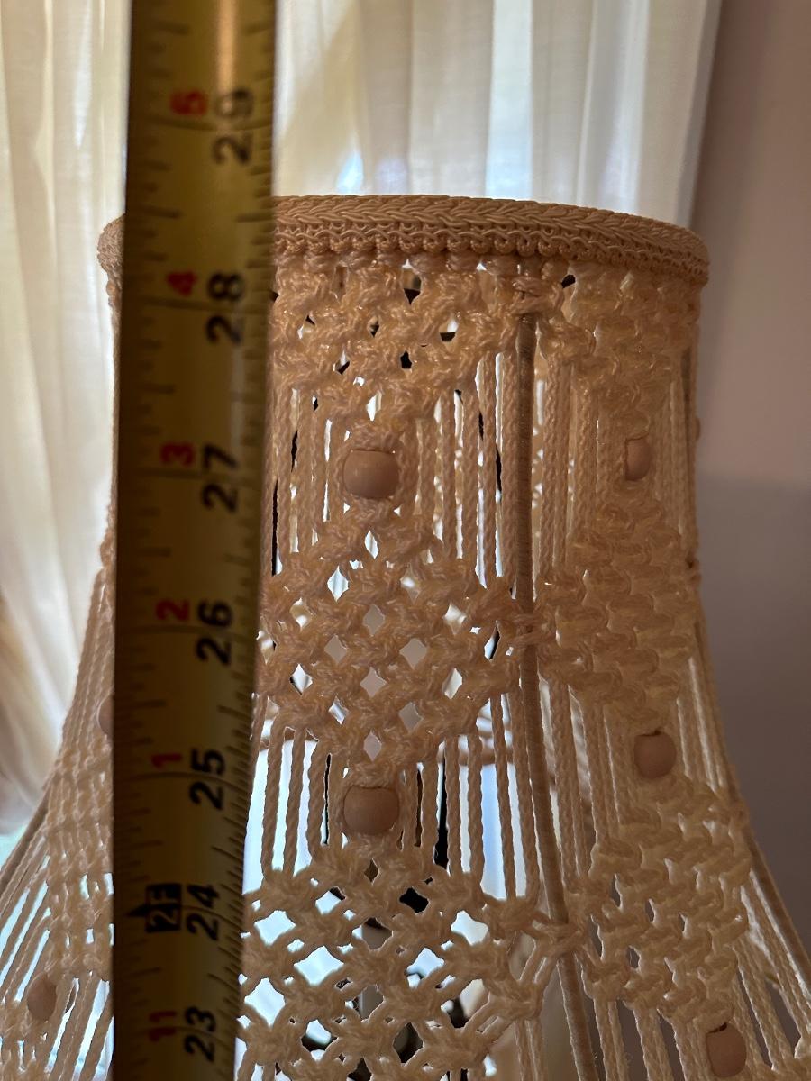 CHRYSTAL LAMP, MACRAMÉ SHADES, 29" TALL AS PICTURED