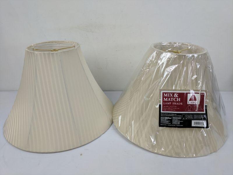 Lamp Shade, Large, Cream Stripe, Set of 2 - New - Top 7", Bottom 17", Height 12"