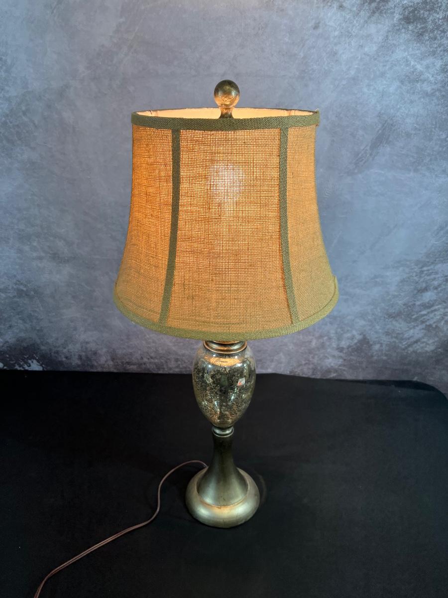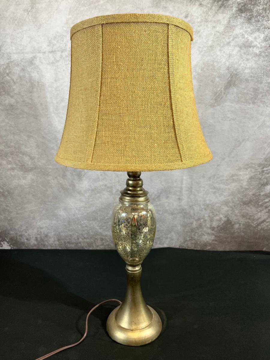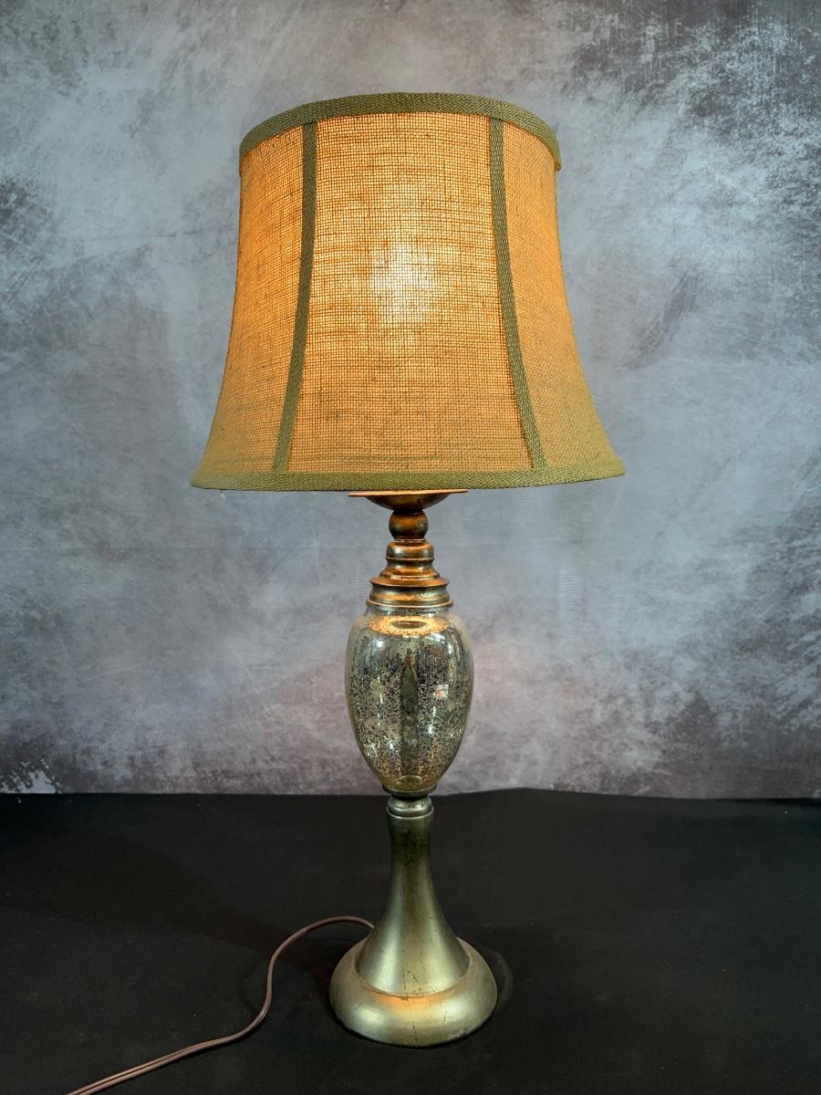 Lamp w/ Mirrored Crackled Base & Burlap Shade, 30"T base