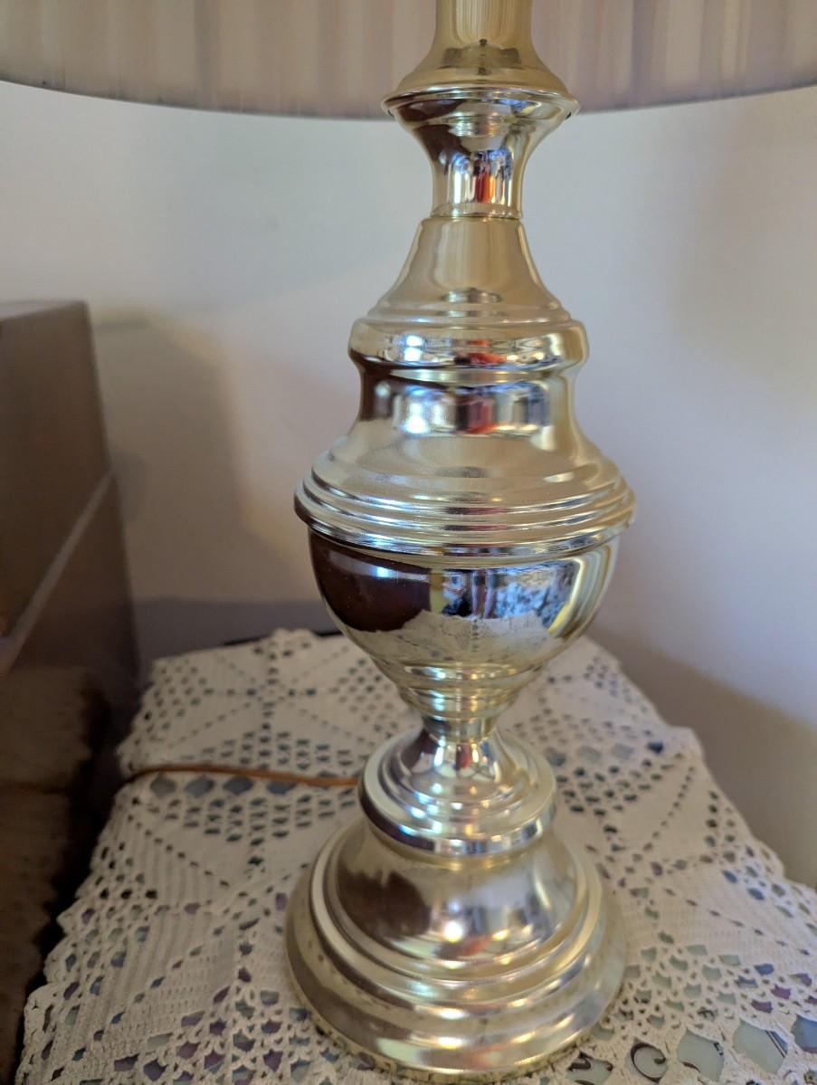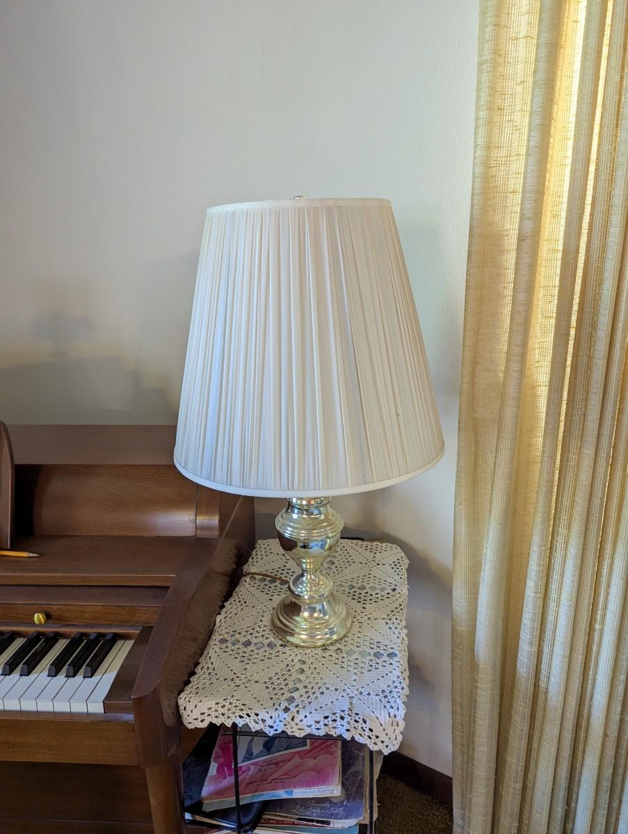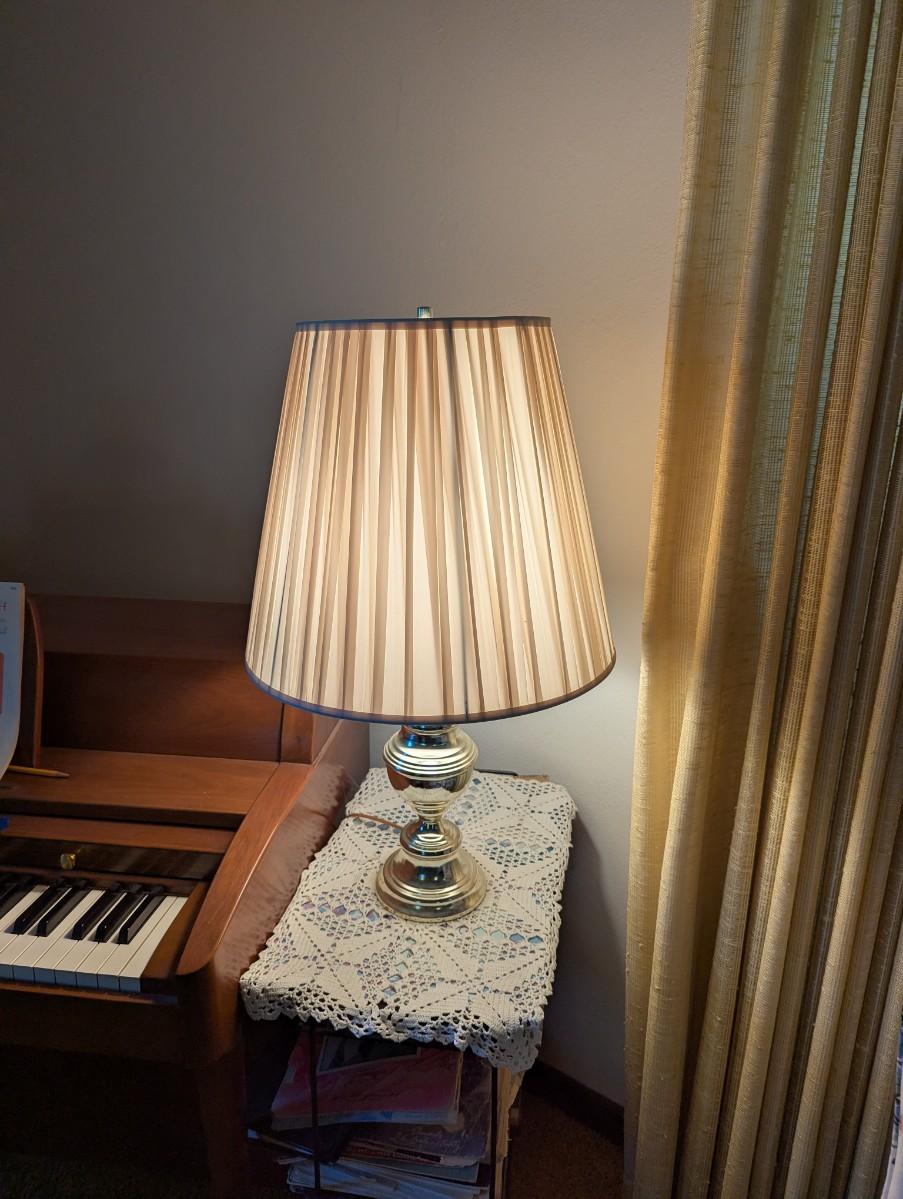 Lamp with brass base white lamp shade