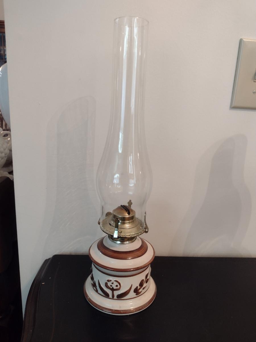 Lamplight Farms Ceramic Oil Lamp with Glass Chimney