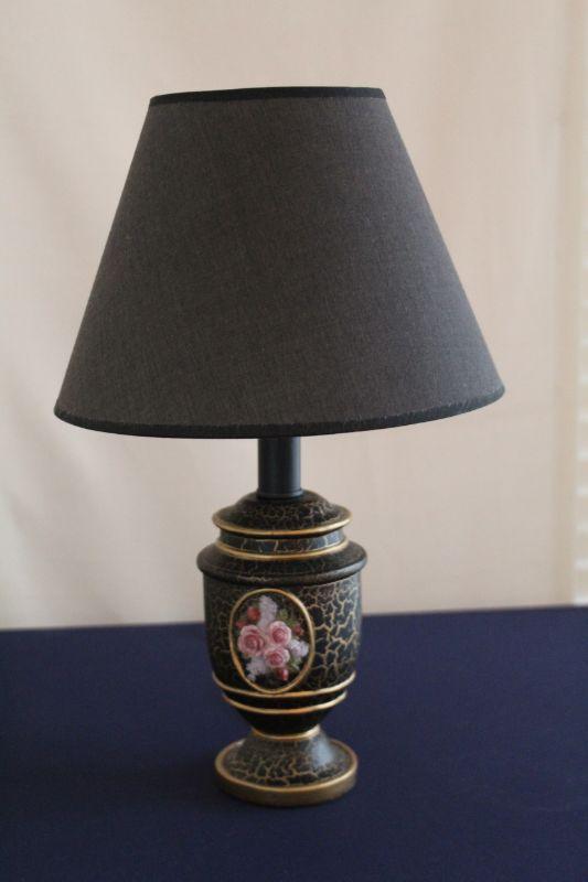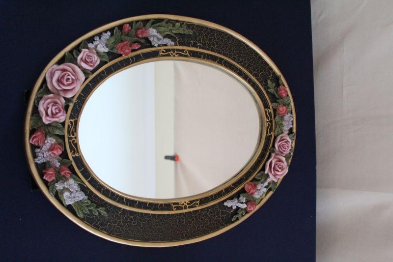 Oval Black crackle floral mirror 16x13"/Matching lamp 16 1/2"