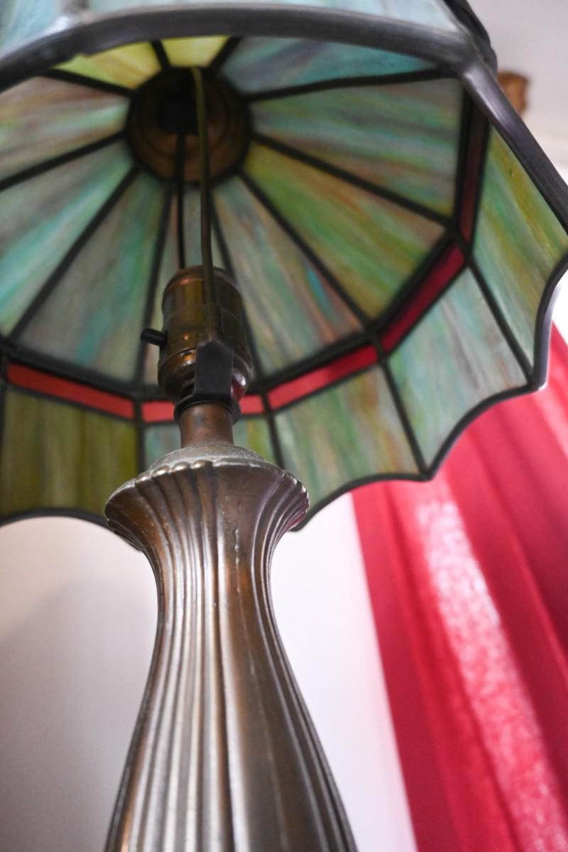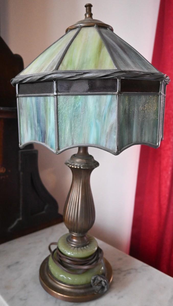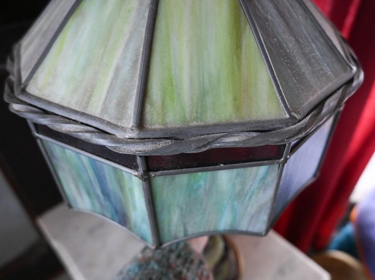 SLAG GLASS TABLE LAMP WITH MARBLE BASE
