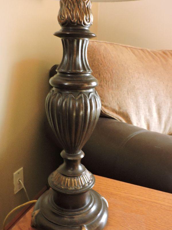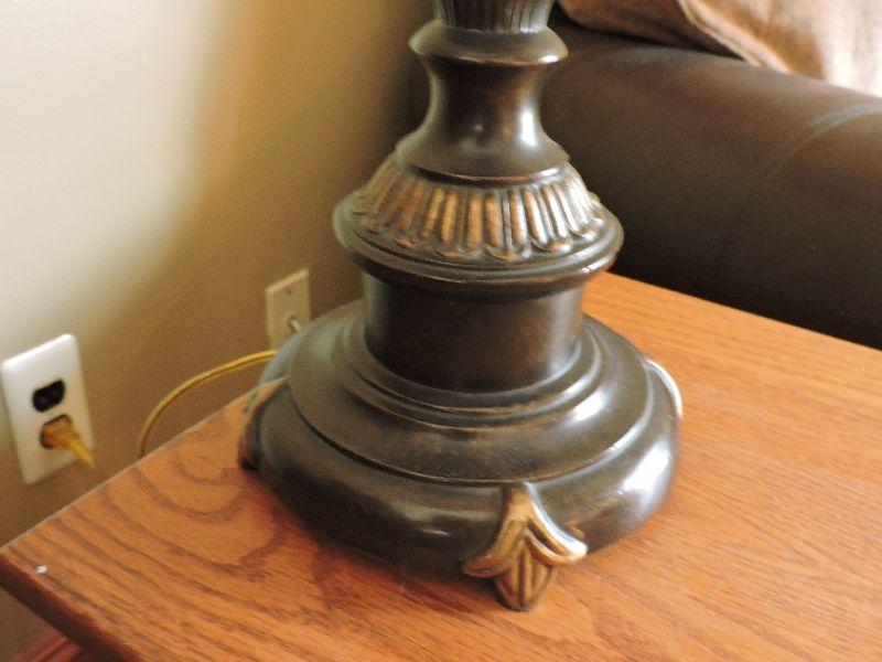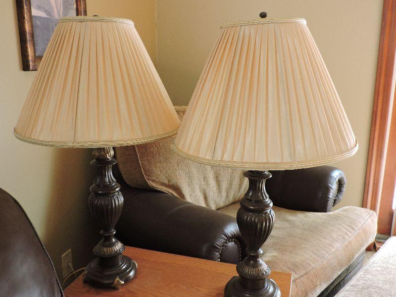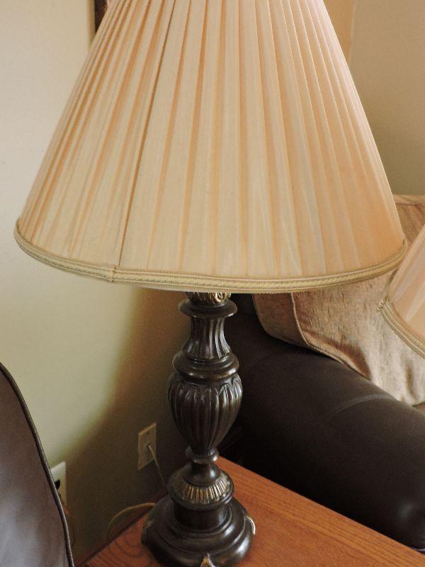 Two table lamps with fluted shades. Untested. Please read Terms and Conditions before placing a bid. Pick up is Friday, October 25th between 4 and 7, and Saturday, October 26th between 9 and 1. Props included in photos are not included in listing. All measurements are approximate. Comes from home with cats.