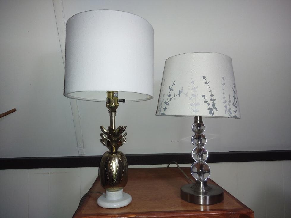 2 lamps. One is tall and one is taller than the other one.