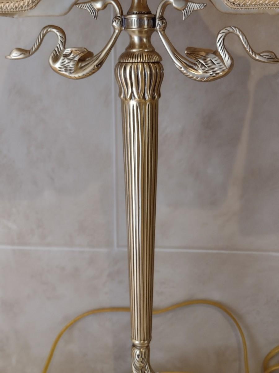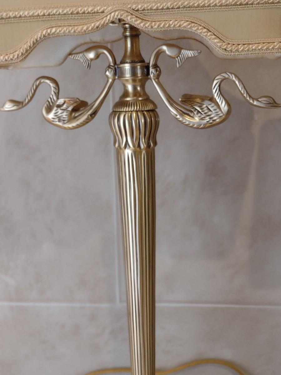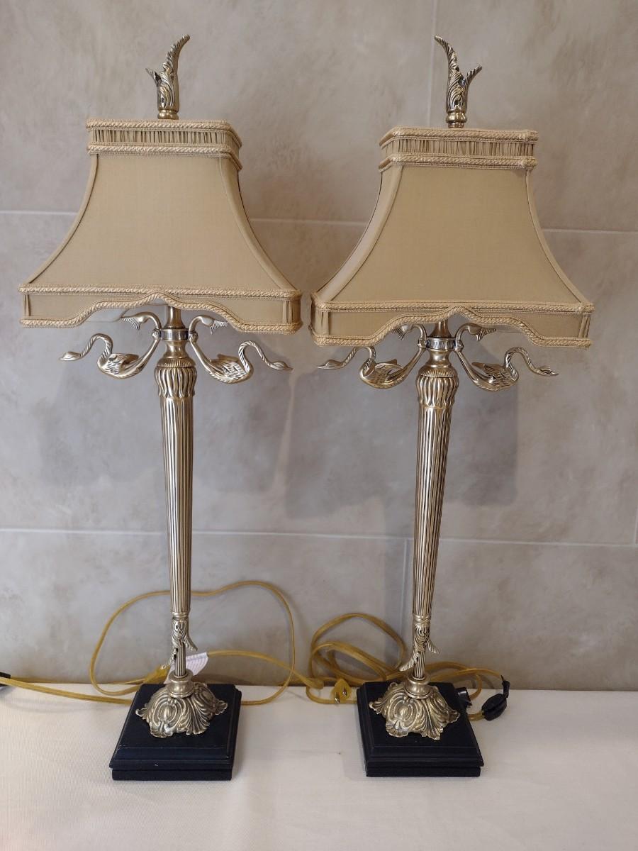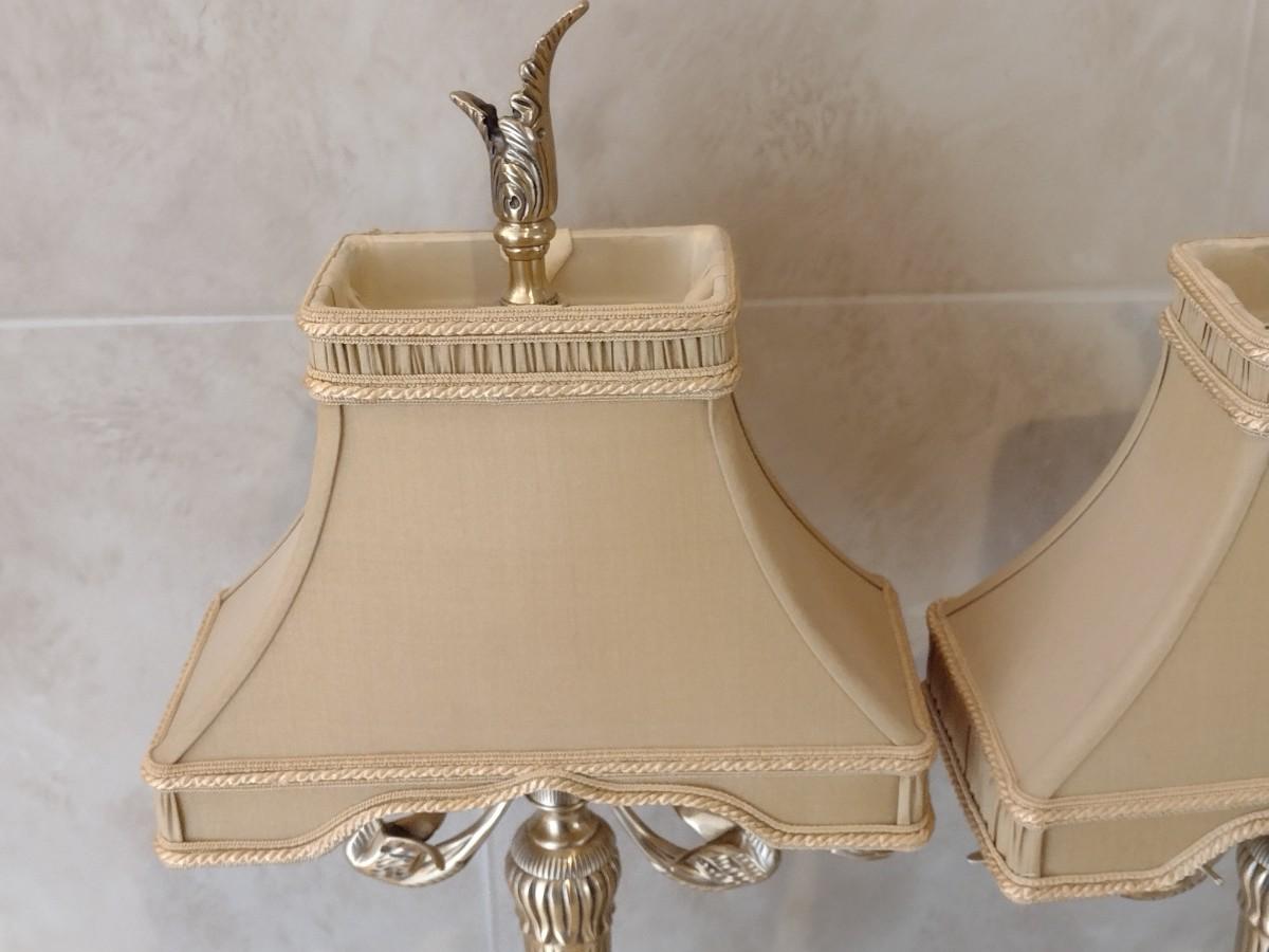 Exquisite Pair of Italian Fluted Post Lamps with Figural Accent