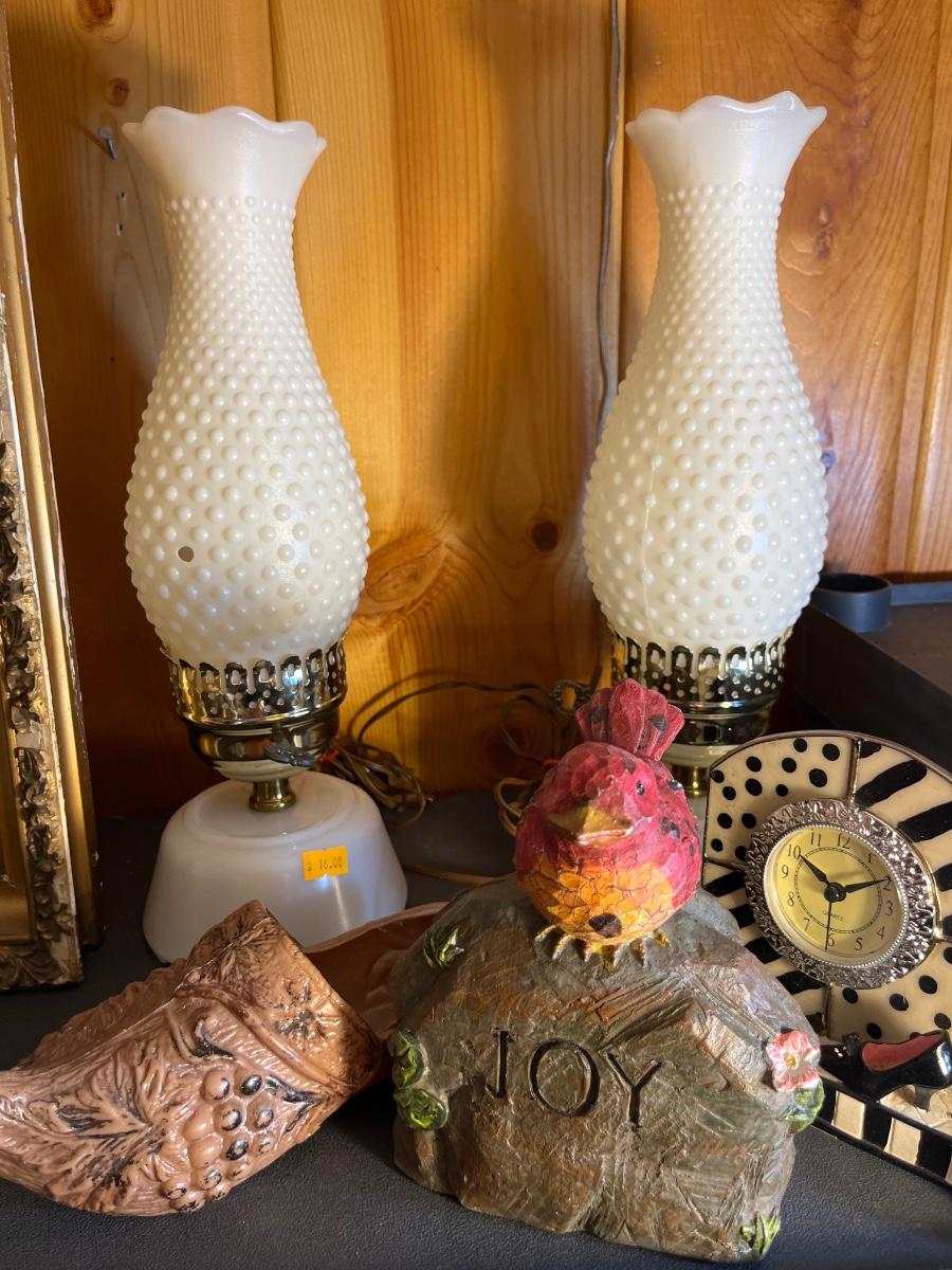 Lamps, shadow box, figurines