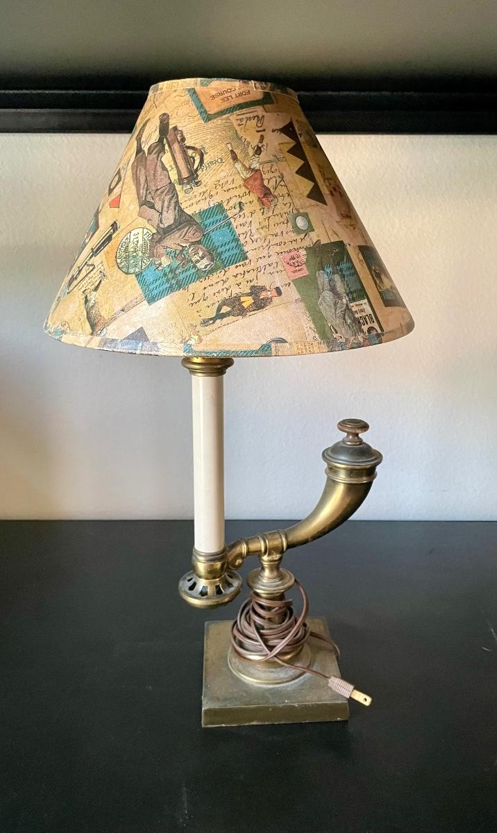 Vintage MCM Stiffel Brass Powder Horn Genie Lamp Desk Table Candle Stick