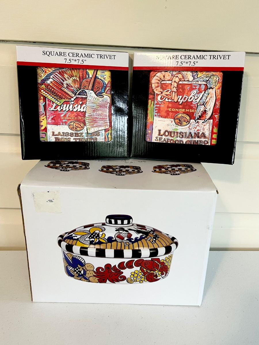 Includes (1) Casserole dish with lid ~ (2) Trivets