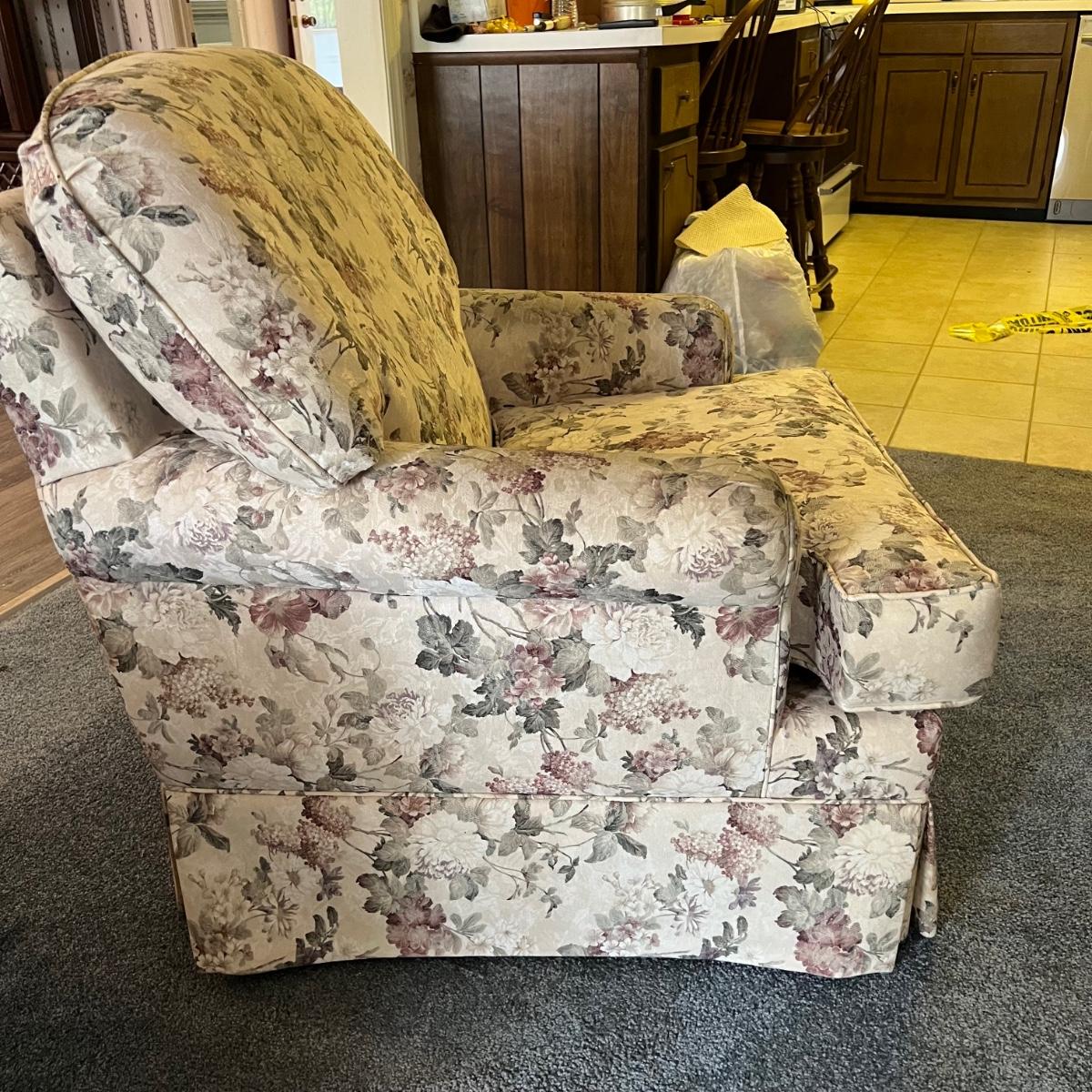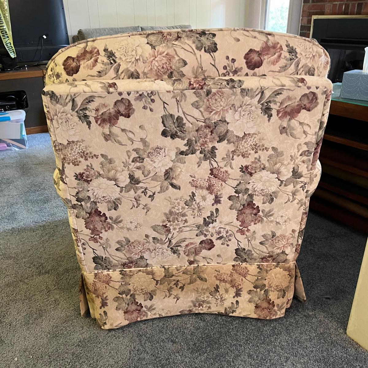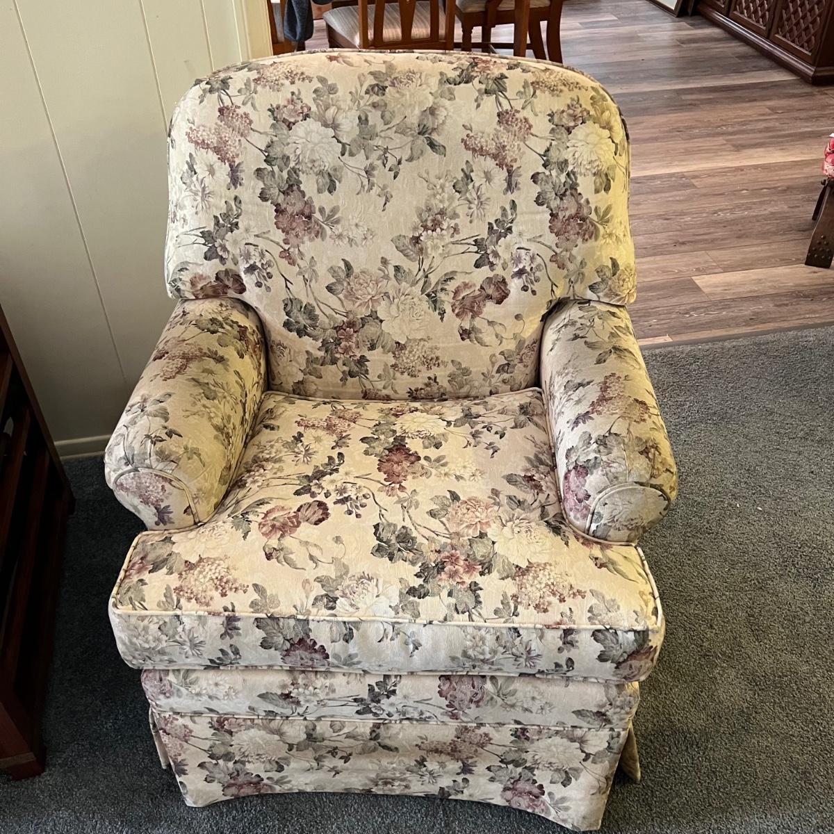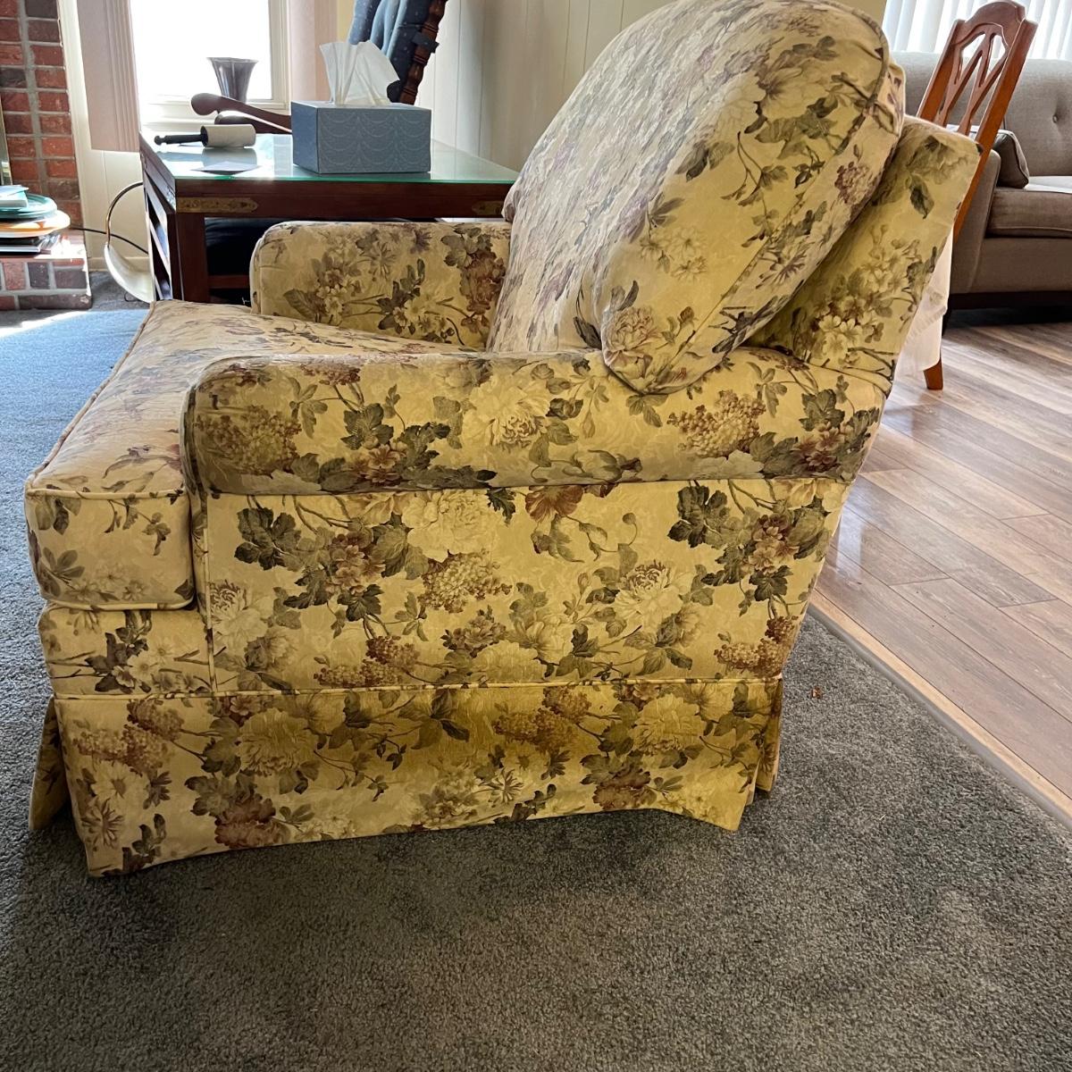 Lancer floral armchair. Armchair measures. 29” x 32” x 36”H. The seat depth is 19” and the back rises 22” above the seat.