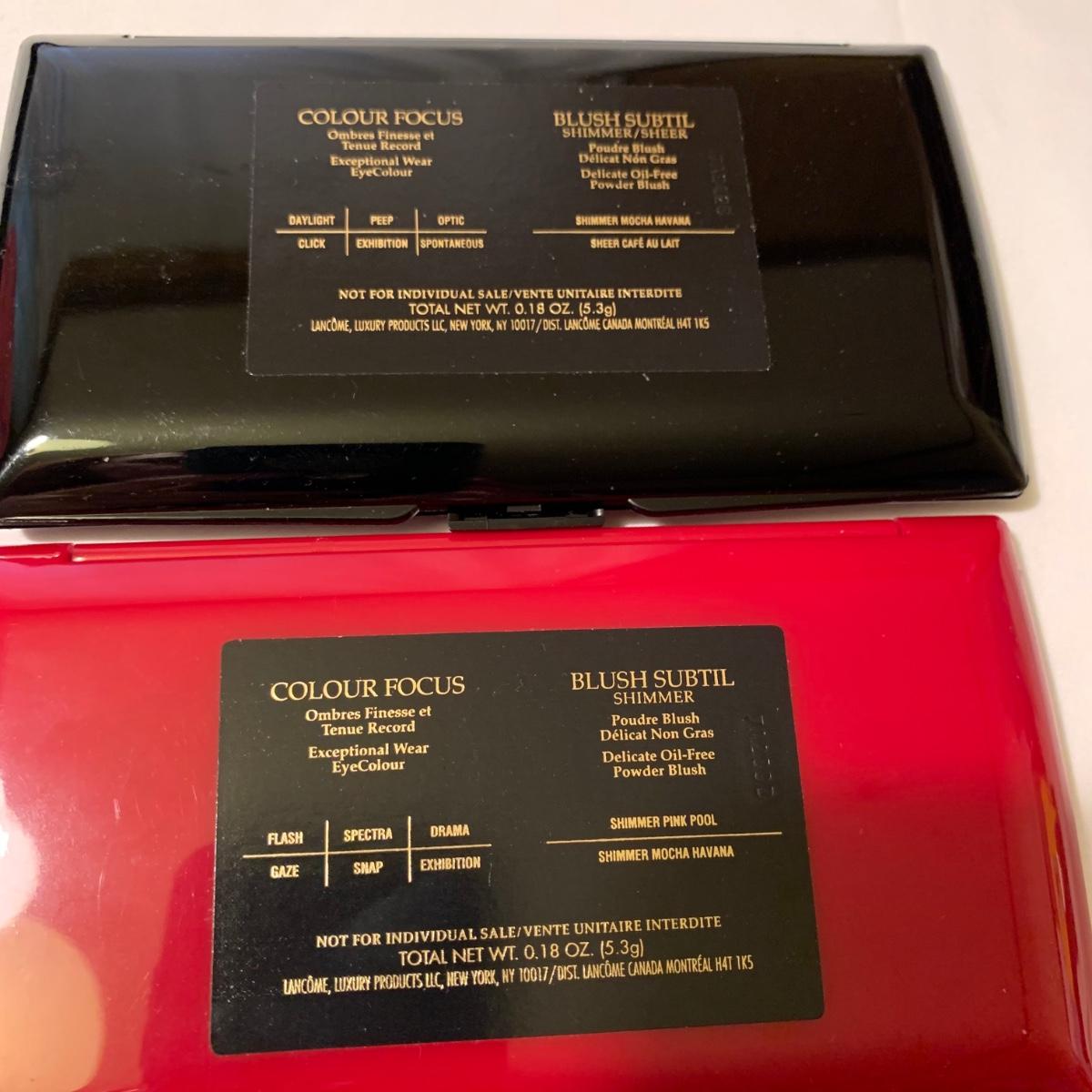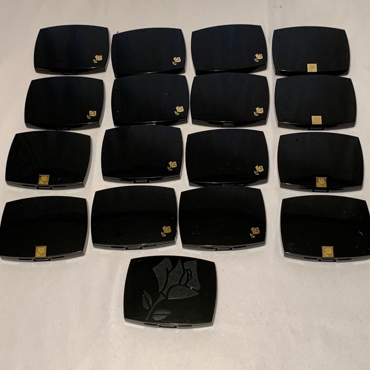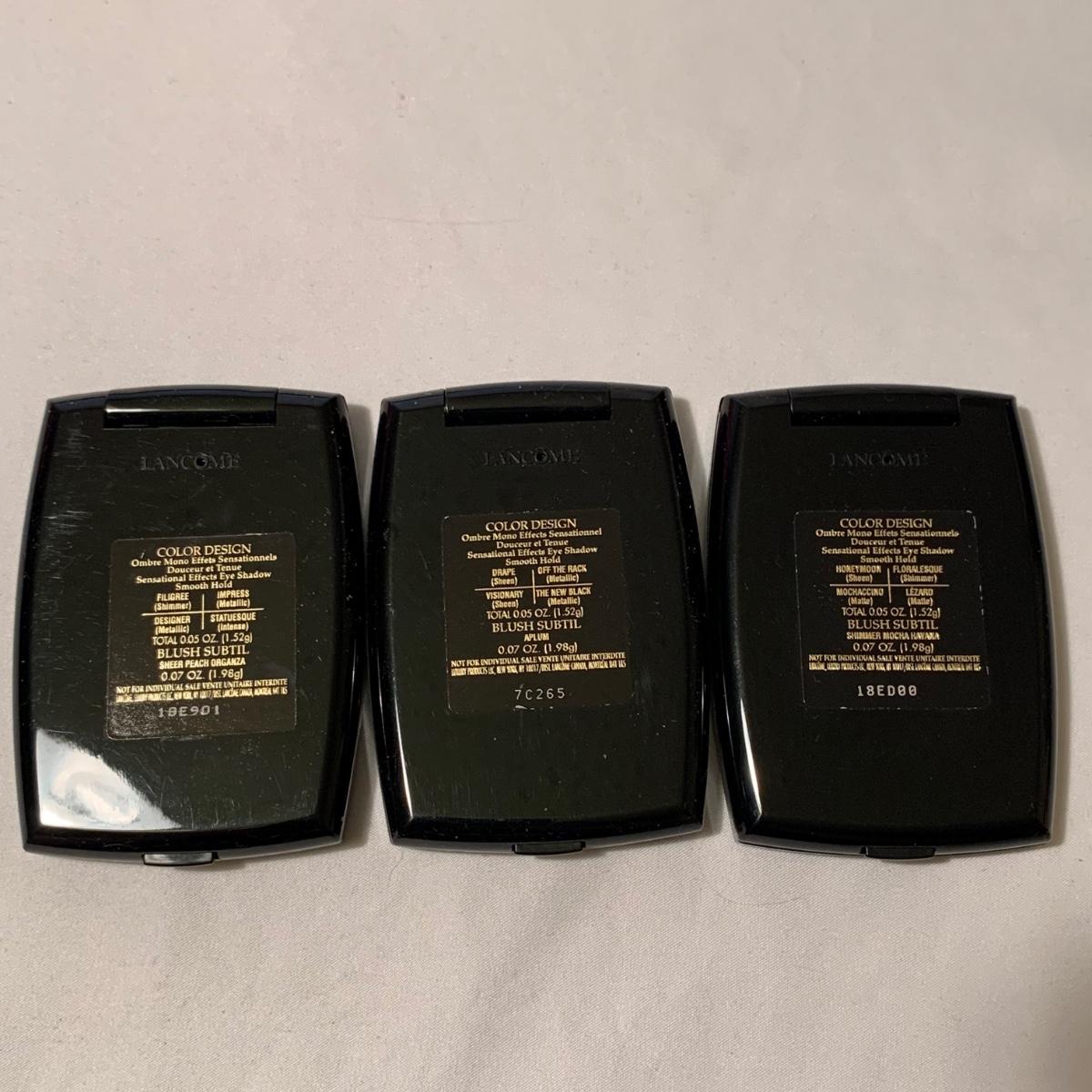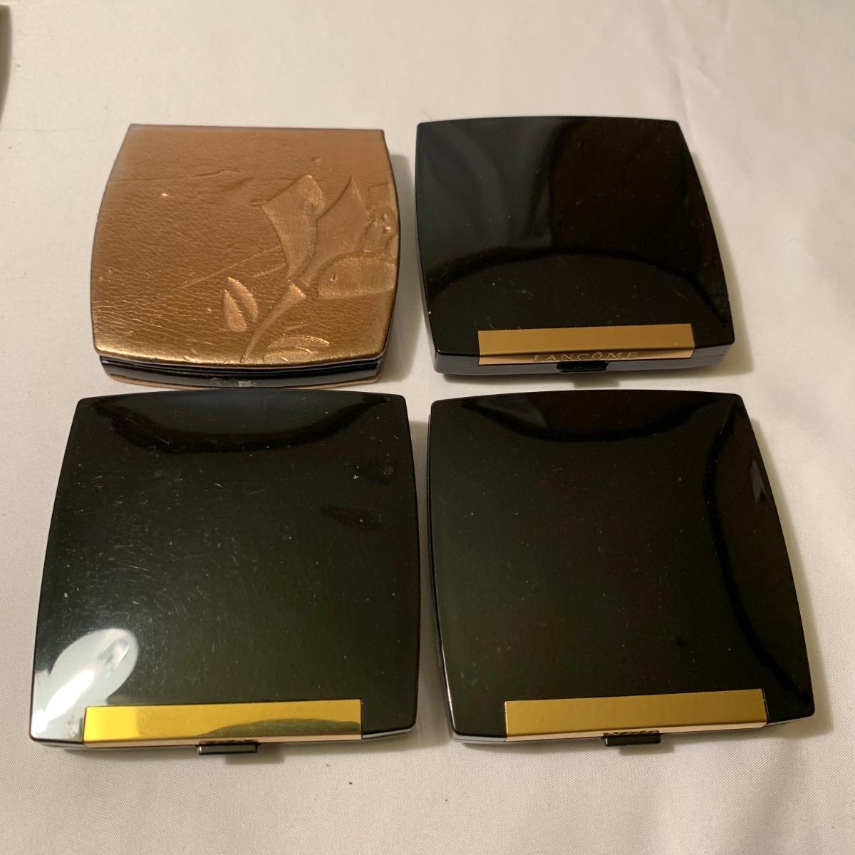 A huge variety of unused Lancôme makeup. Many shades of eyeshadows, bronzers, and blushes, as well as lipsticks, makeup brushes, lipstick cases, and an eyelash curler. Four hard Lancôme caddies are included, as well as two smaller pouches. The black and white caddy measures 13” x 8” x 6”. Local pickup only.