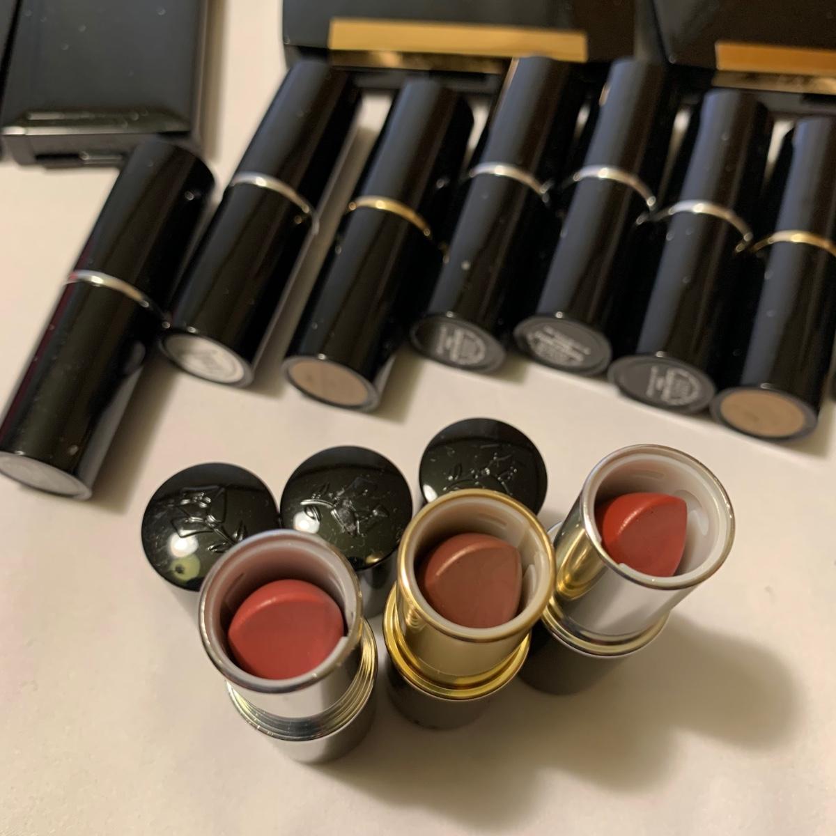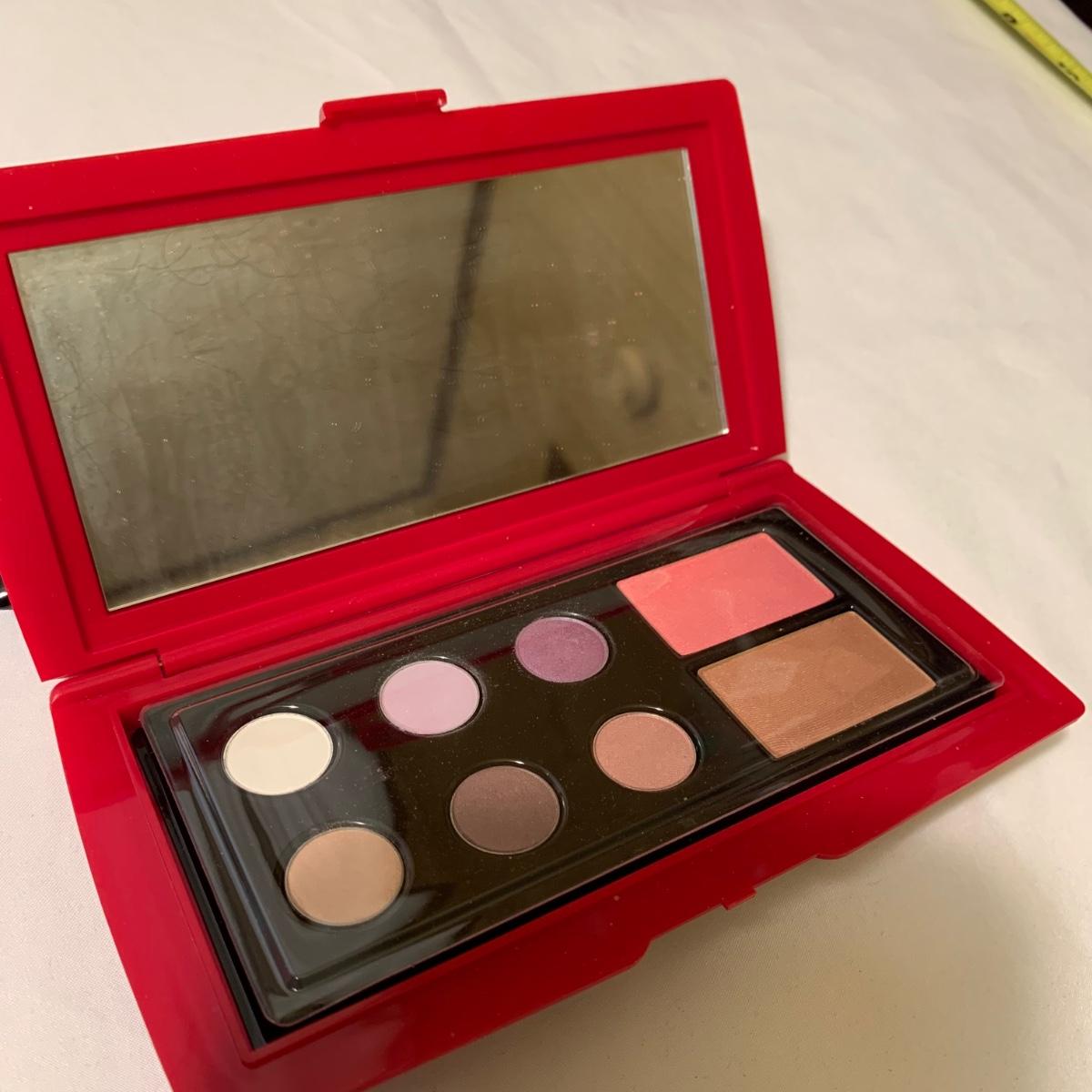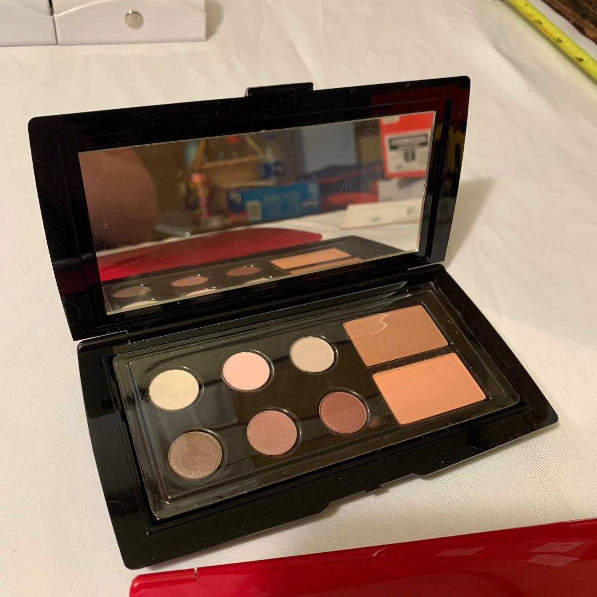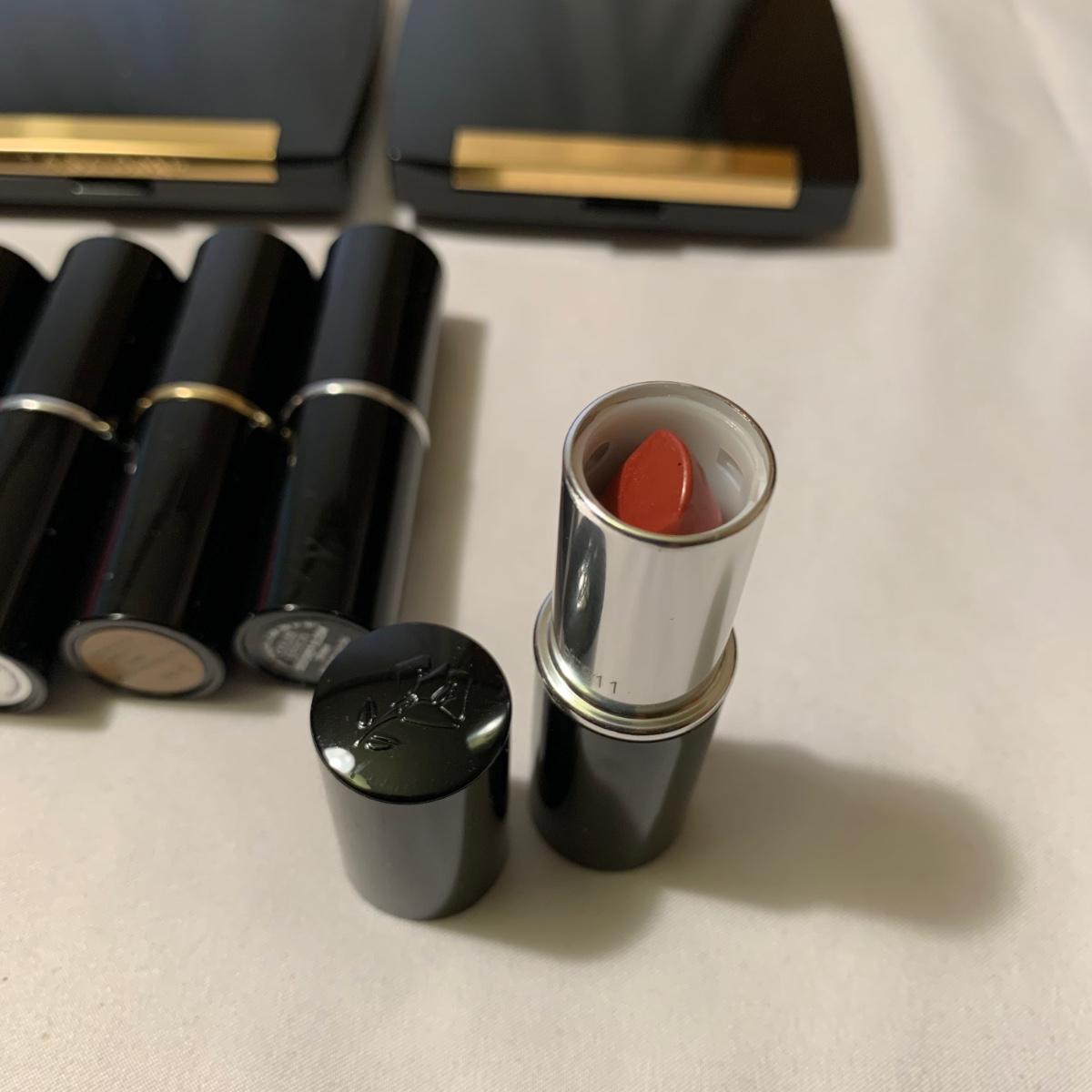 A huge variety of unused Lancôme makeup. Many shades of eyeshadows, bronzers, and blushes, as well as lipsticks, makeup brushes, lipstick cases, and an eyelash curler. Four hard Lancôme caddies are included, as well as two smaller pouches. The black and white caddy measures 13” x 8” x 6”. Local pickup only.