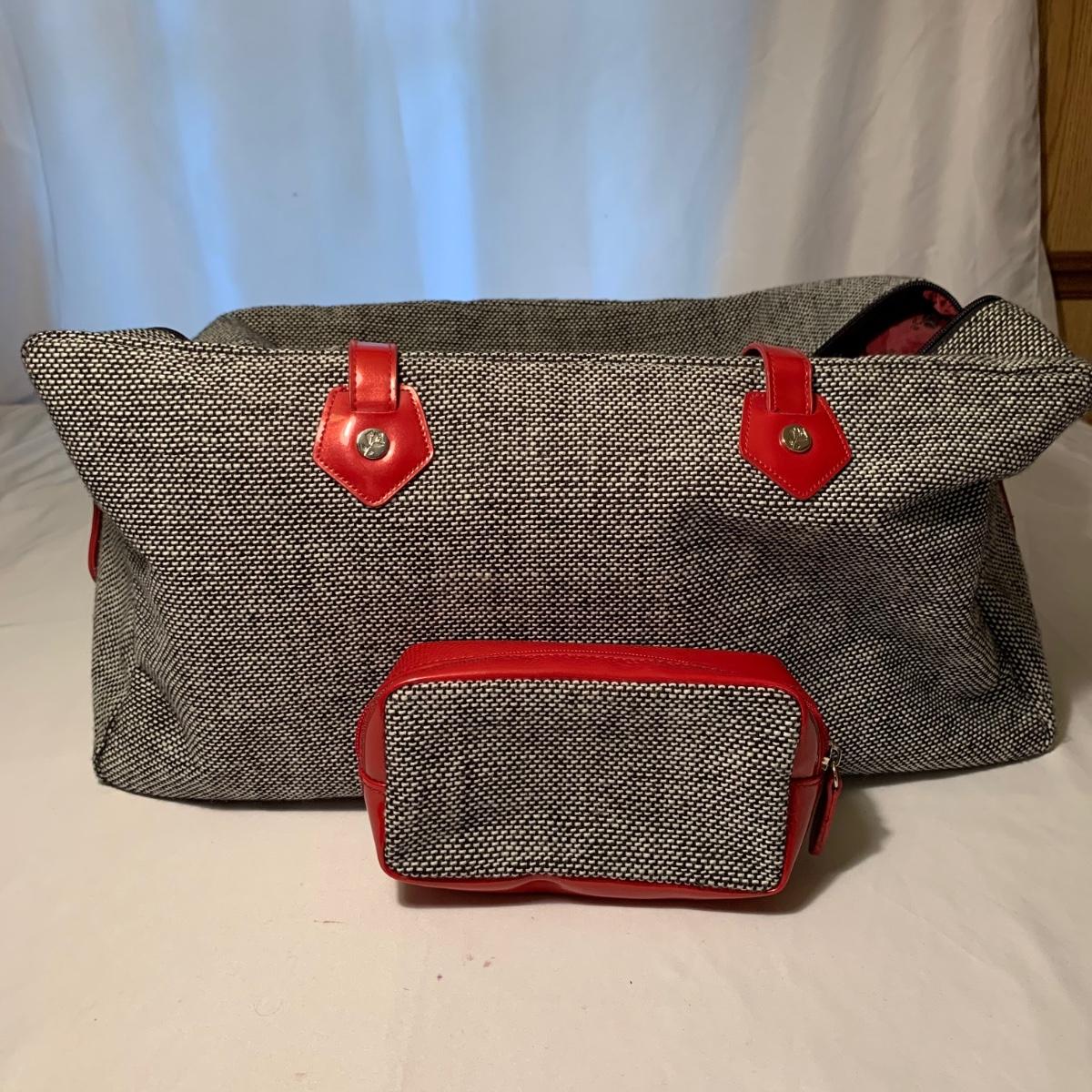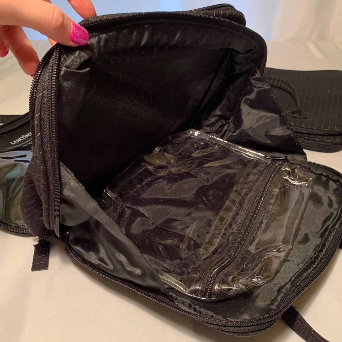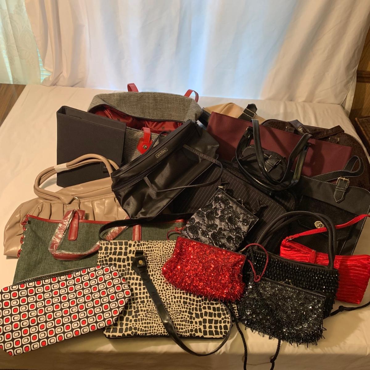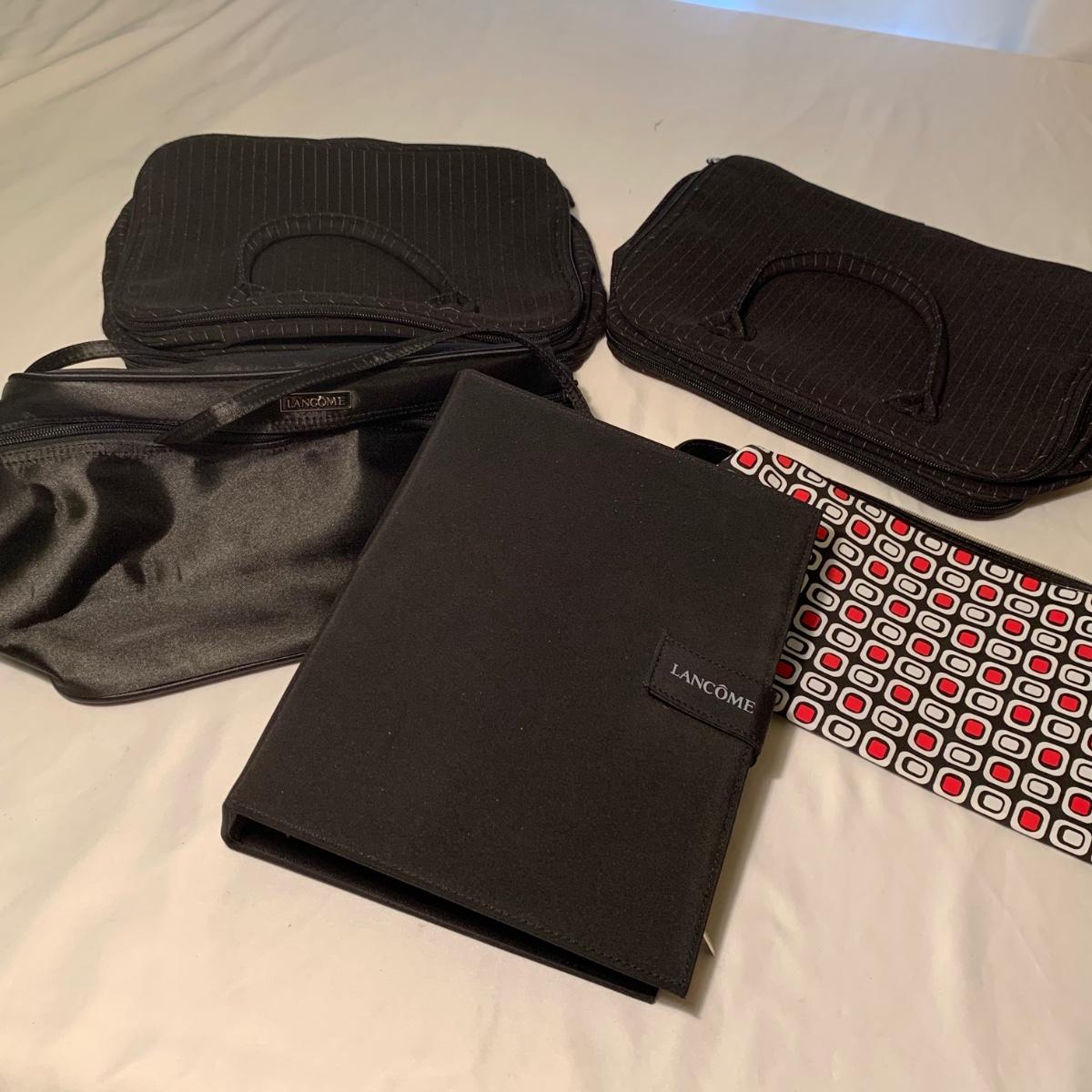 A large variety of bags for different purposes, all Lancôme brand. Some smaller beaded bags for a night on the town. Some travel cases for makeup. Some larger travel bags. Bag materials range from satin to cloth to suede to pleather and more! The smallest bag (red beaded purse) is about 9” x 5”. The largest (black and white w/ red straps) is about 20” x 8” x 10”. All items appear to be in very good condition. Approximately 20 bags total. Local pickup only.