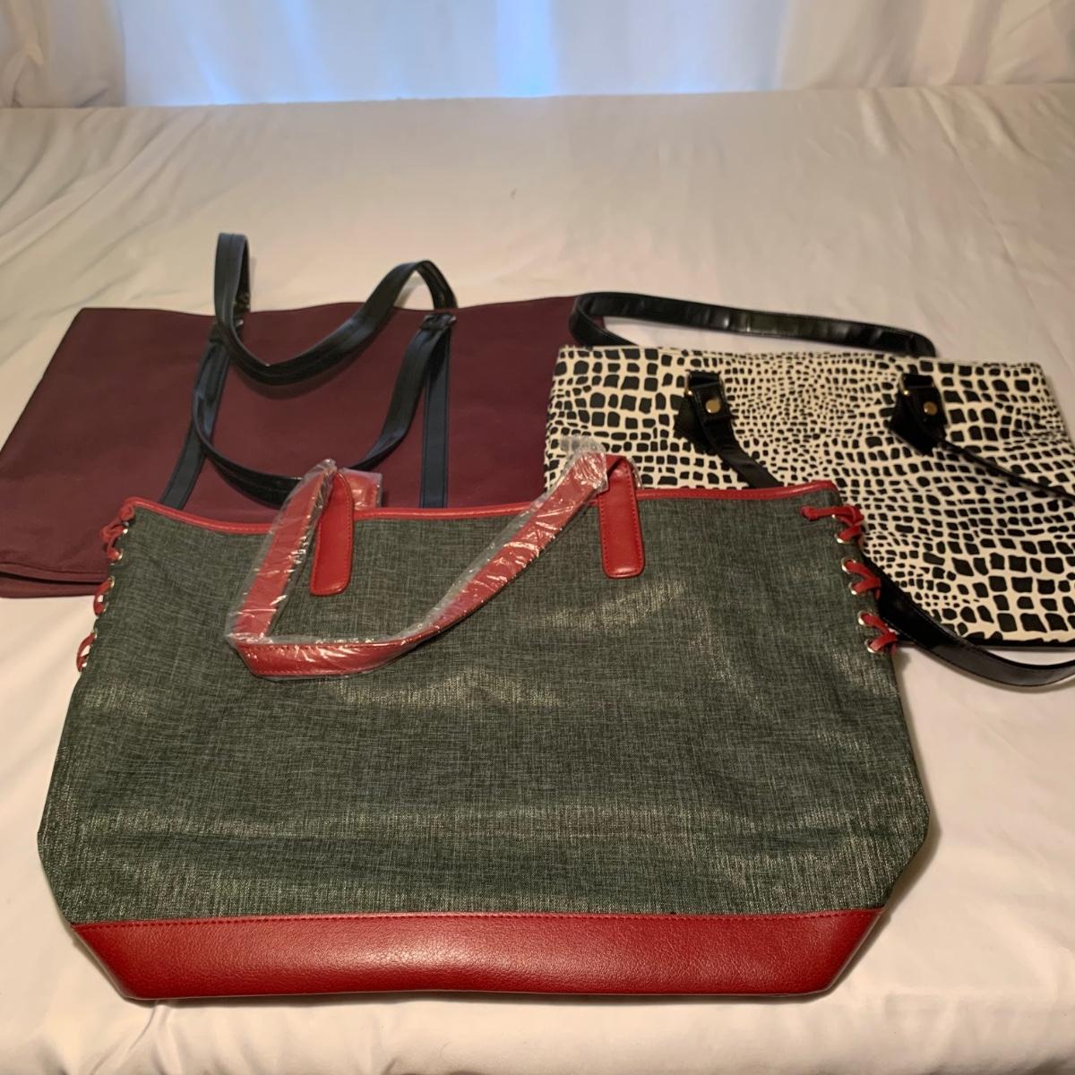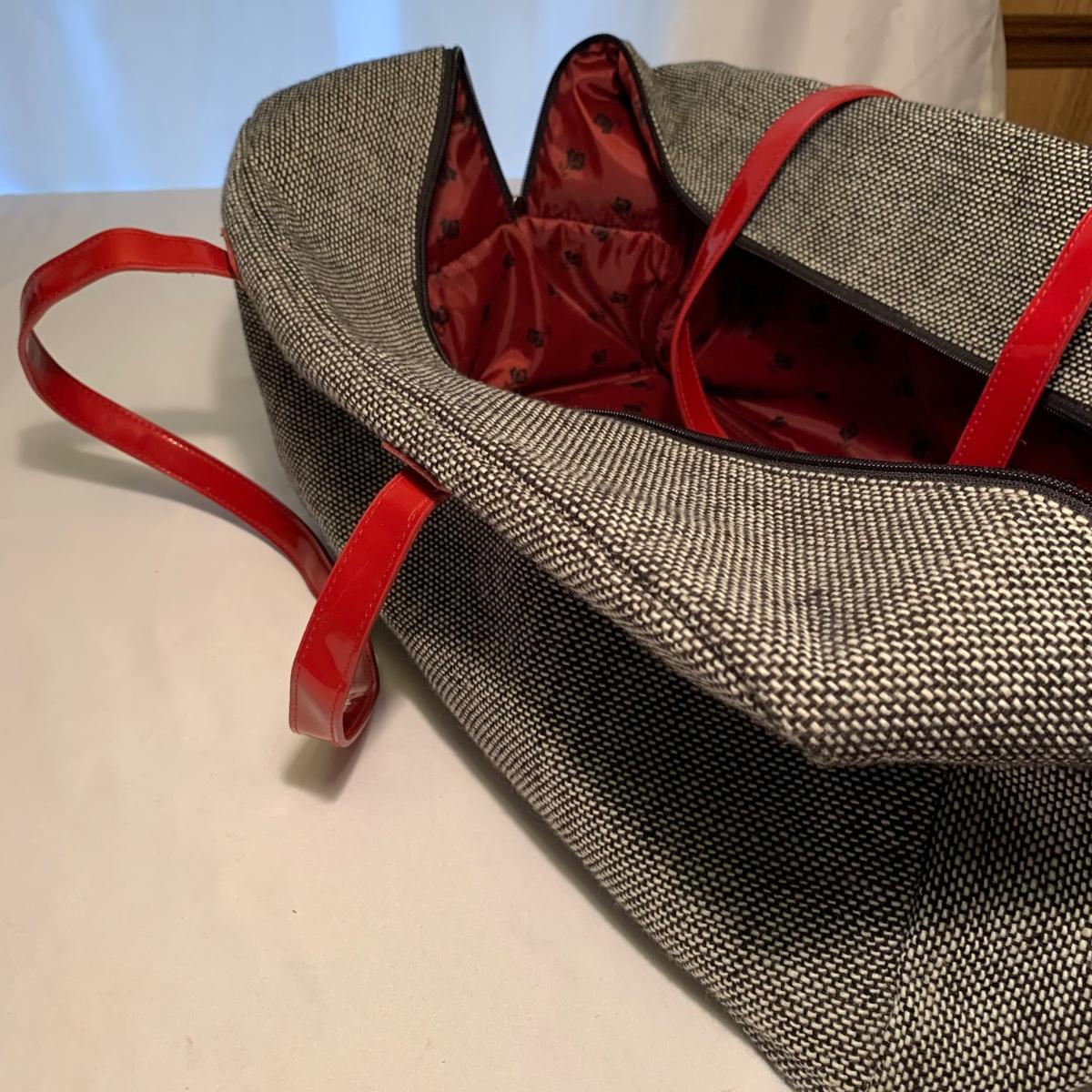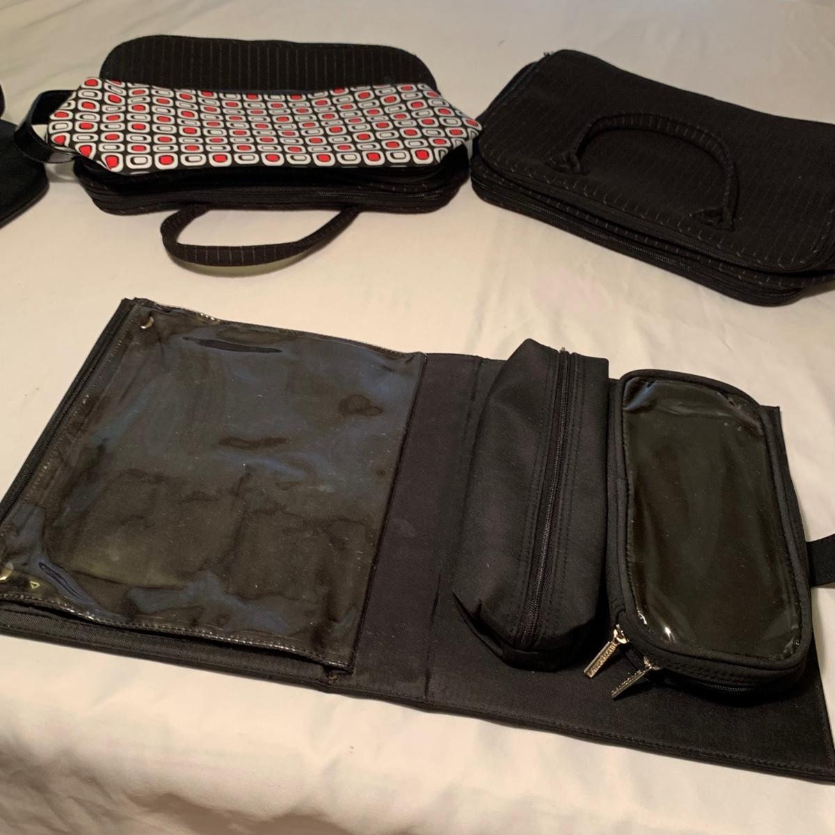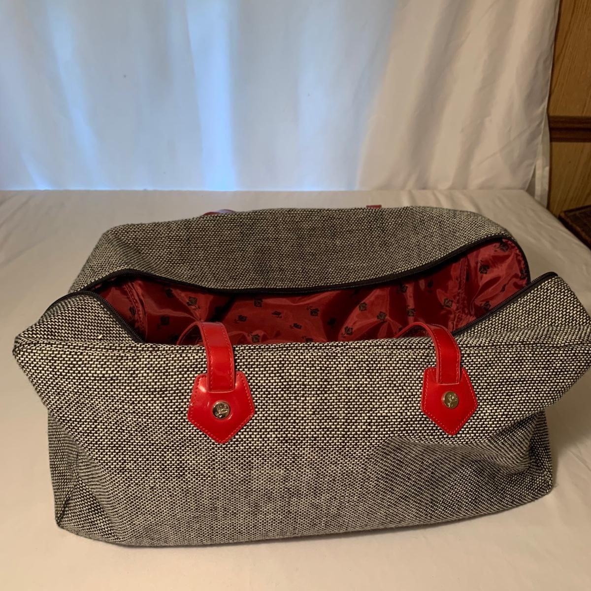 A large variety of bags for different purposes, all Lancôme brand. Some smaller beaded bags for a night on the town. Some travel cases for makeup. Some larger travel bags. Bag materials range from satin to cloth to suede to pleather and more! The smallest bag (red beaded purse) is about 9” x 5”. The largest (black and white w/ red straps) is about 20” x 8” x 10”. All items appear to be in very good condition. Approximately 20 bags total. Local pickup only.