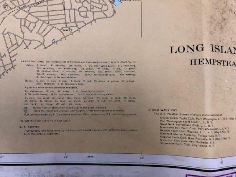 Description: Ahoy! Antique Coast Guard nautical chart of the L.I. Sound and the East River. Numbered C. & G. S. 223; published May 23rd, 1955 (stamped by CG). Material: paper. Measurement: approximate 34" x 39" (INCHES). Shipping cost: $10; different rate to Alaska, California & Hawaii. International rate applies.