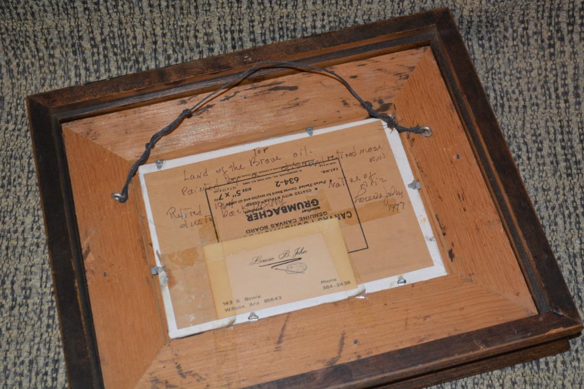 Land of the Brave Framed Oil Painting 1977 Louise B. John 12”x10”