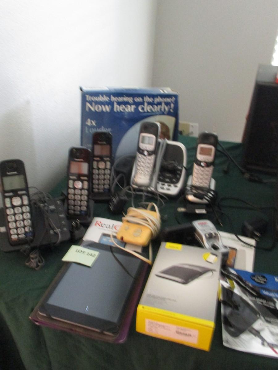Cordless phones, wireless in-car speaker phone, IPad-=not sure it works or has a passcode, k