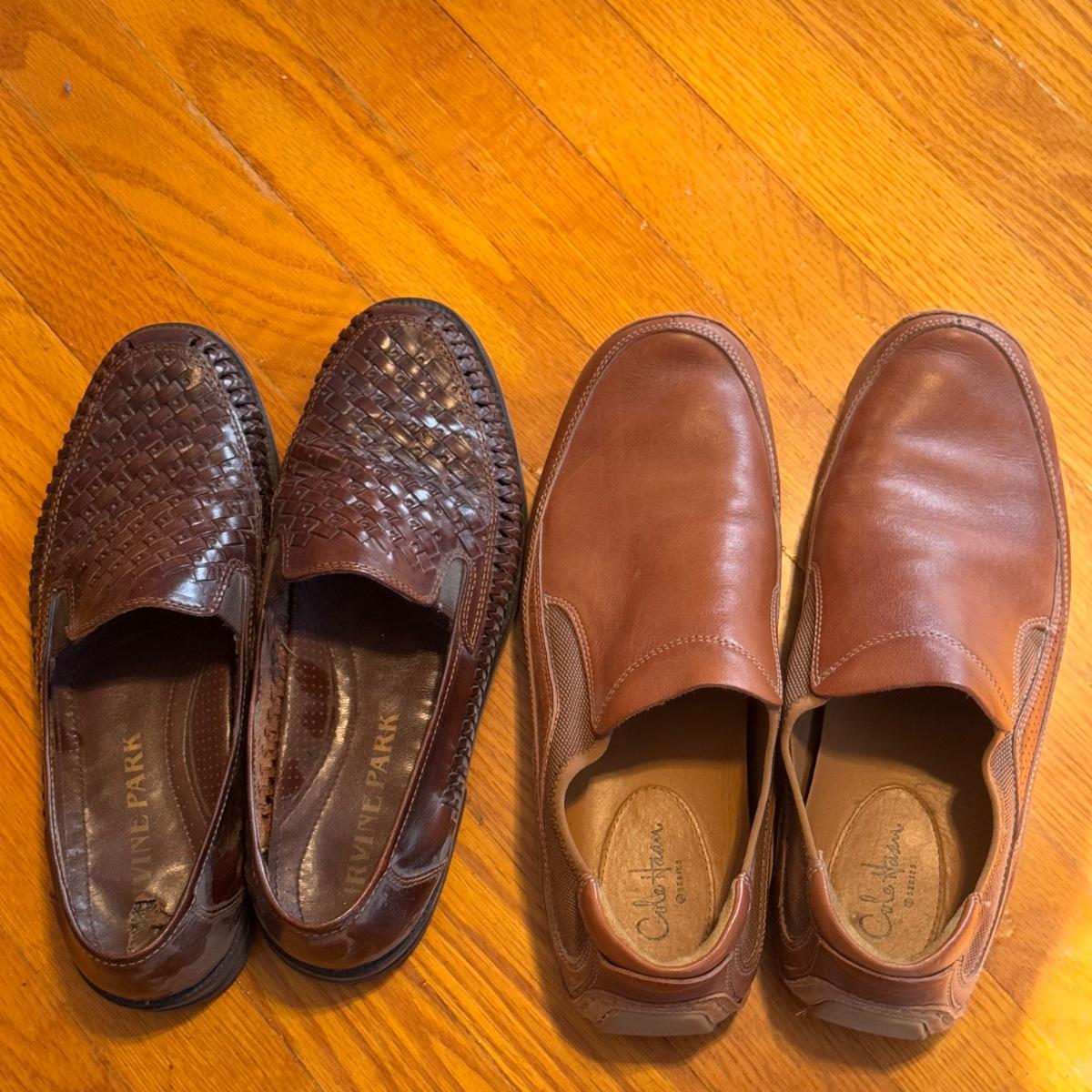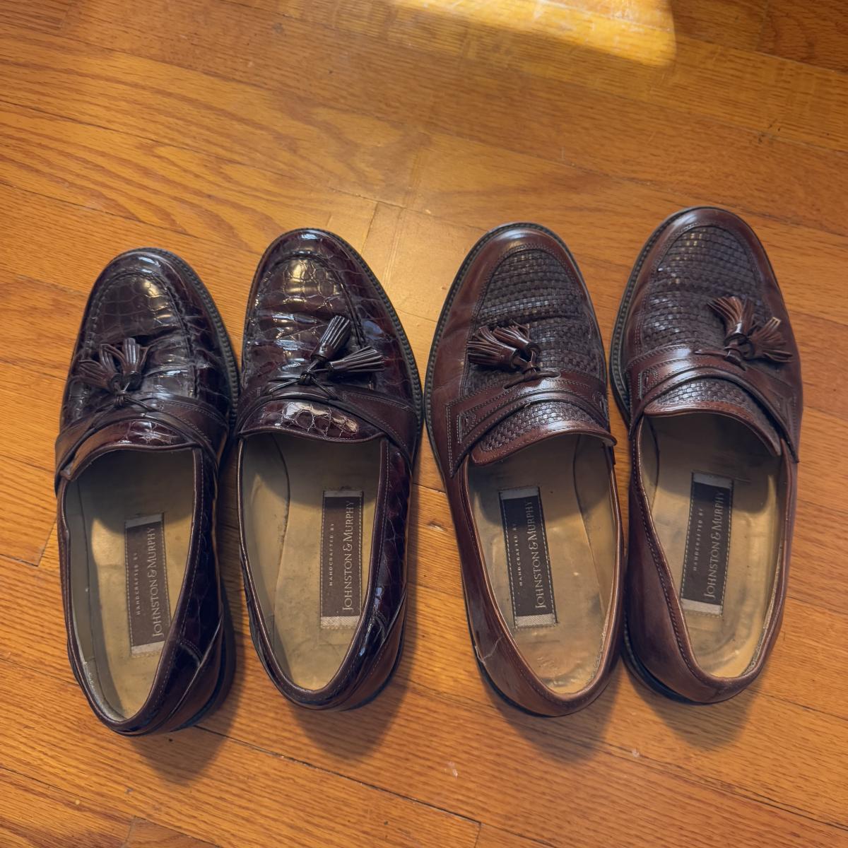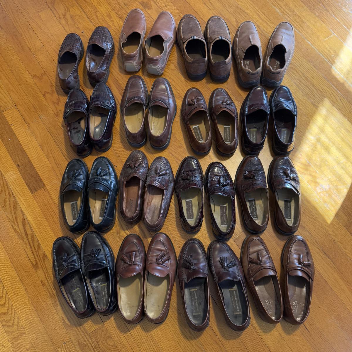 Lot includes 16 pairs of men’s dress shoes in men’s sizes 8 1/2, with one pair being a 9 1/2. You’ll find the following brands: Sperry, Cole Haan, G.H. Bass & Co., Johnston & Murphy, and Lands’ End. Shipping available.