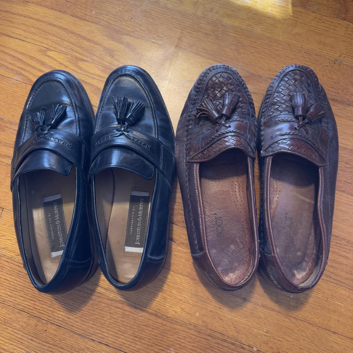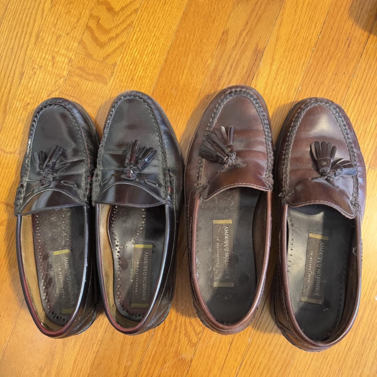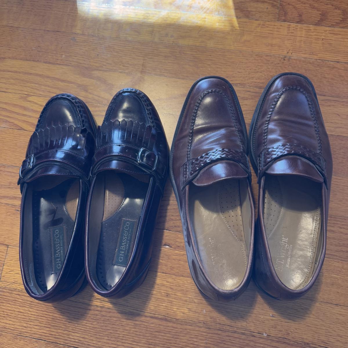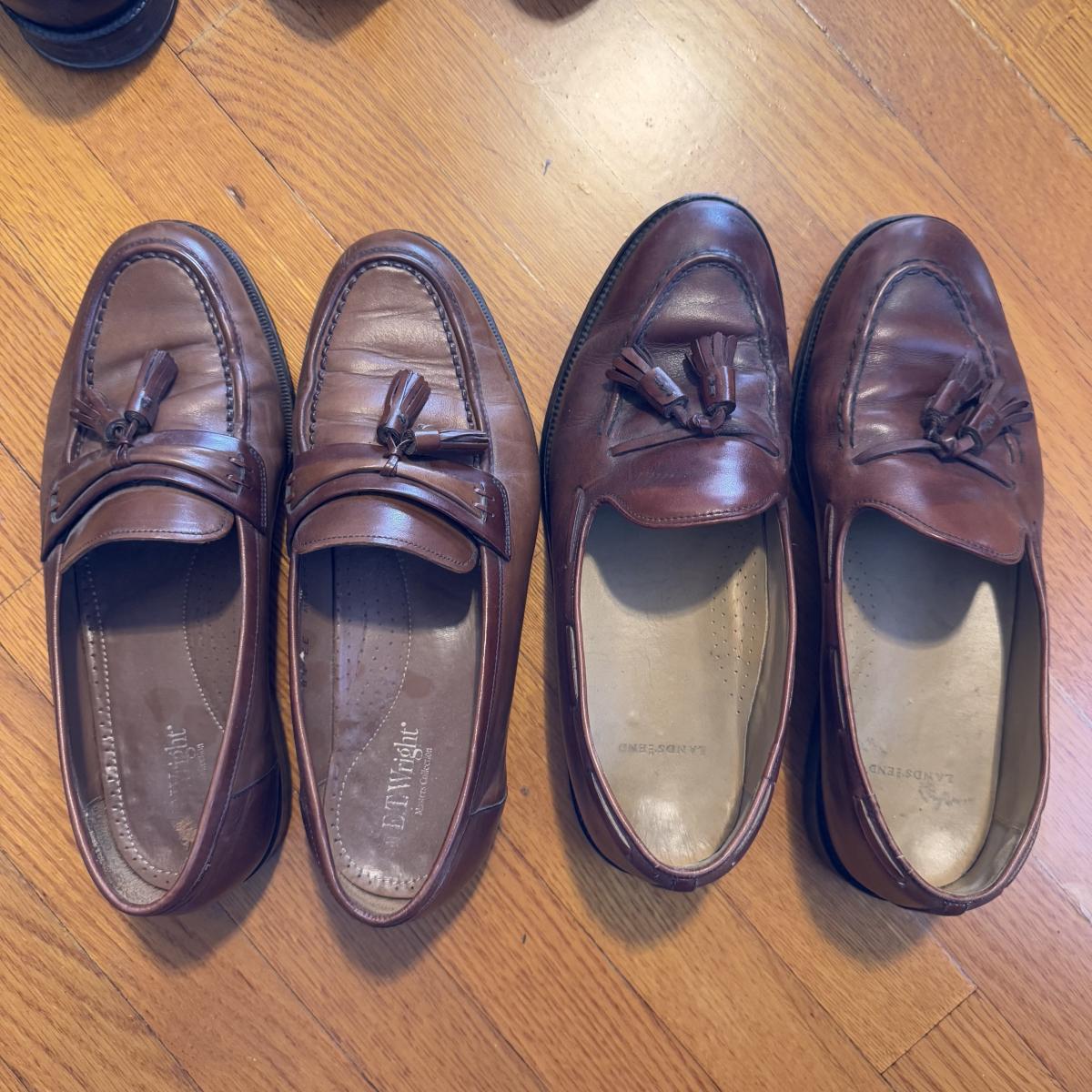 Lot includes 16 pairs of men’s dress shoes in men’s sizes 8 1/2, with one pair being a 9 1/2. You’ll find the following brands: Sperry, Cole Haan, G.H. Bass & Co., Johnston & Murphy, and Lands’ End. Shipping available.