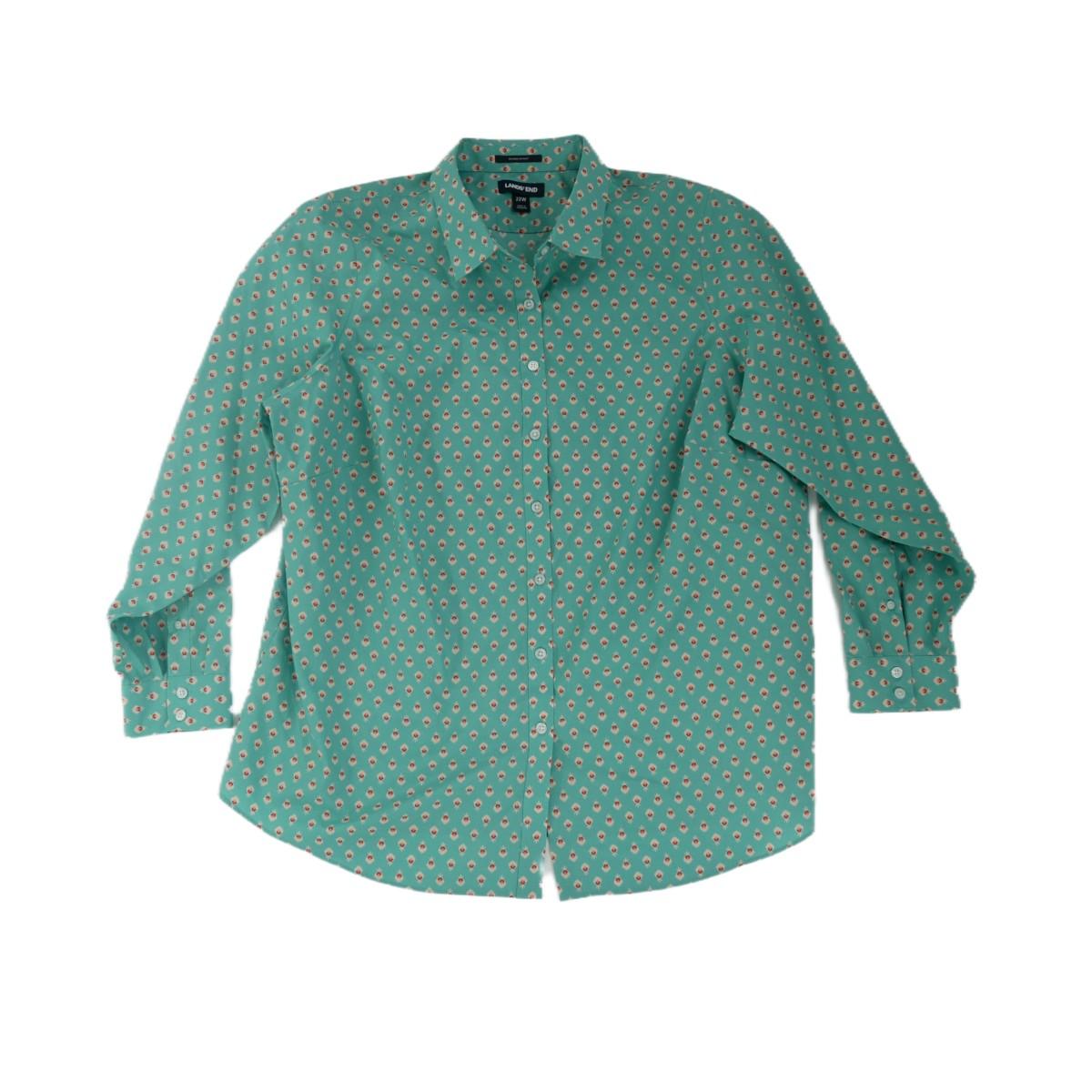 Turquoise patterned button down Land's End shirt, size 22W. Like new condition.
