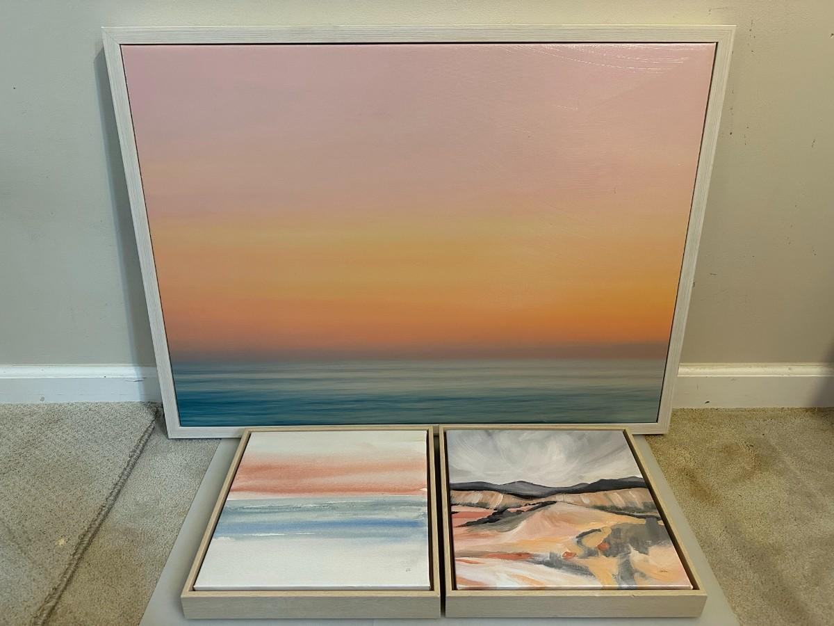 3 Landscape Art prints 2 10" square, 1 30" x 22"