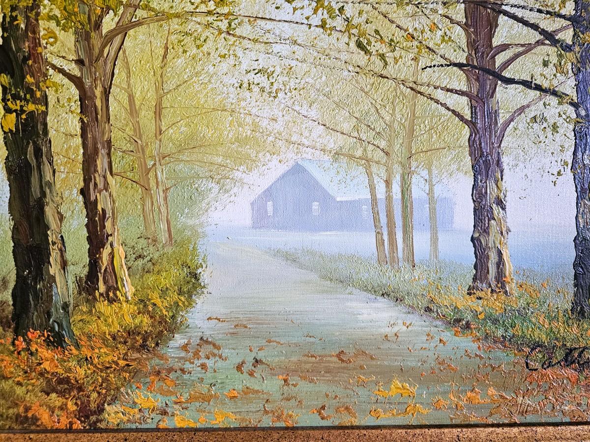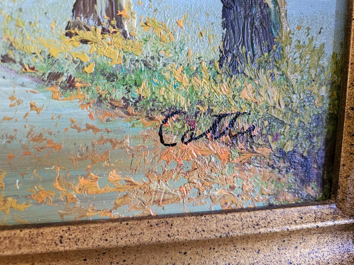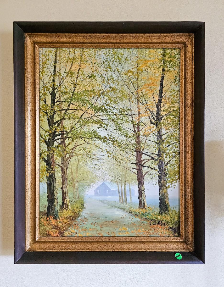 Vintage framed landscape, signed Cattie (?), Oil on canvas. 27" x 33".