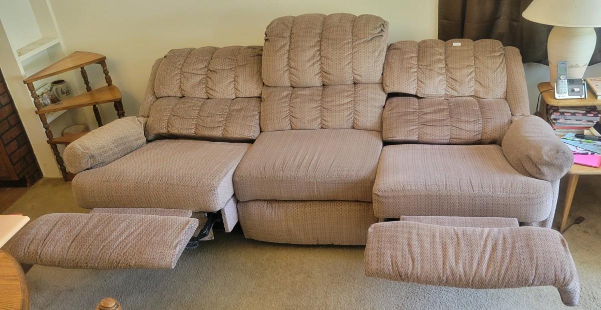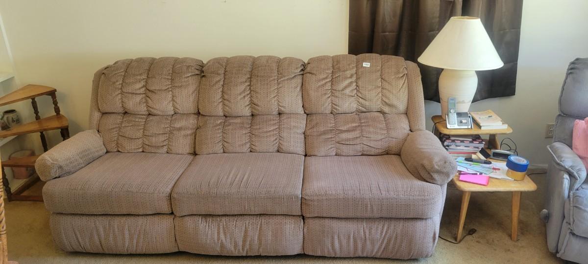 Recliner at each end. No stains, no tears, no rips. Smoke free/Pet free home.
