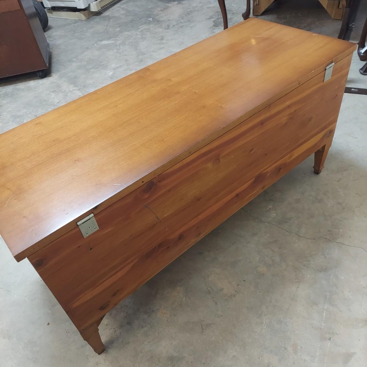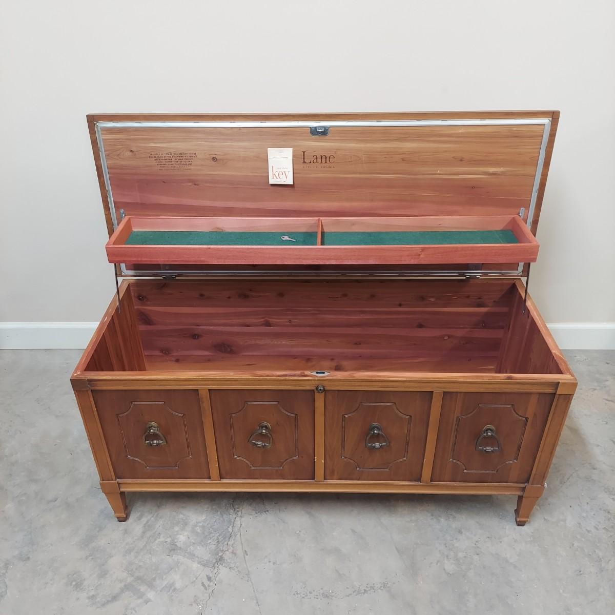 Lane brand cedar chest with key. Piece measures 42” x 16” x 21"H.