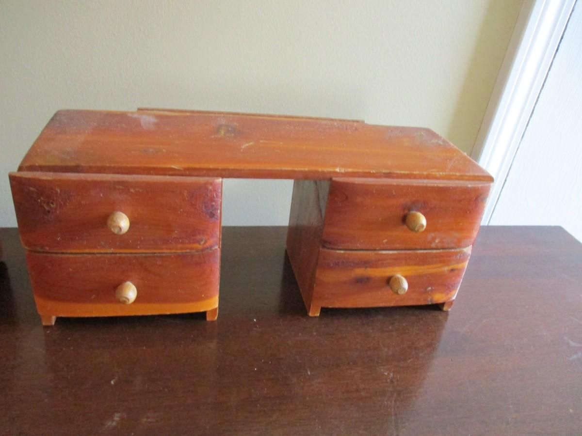 Lane Cedar Trinket Box & Wood Salesman Sample Desk