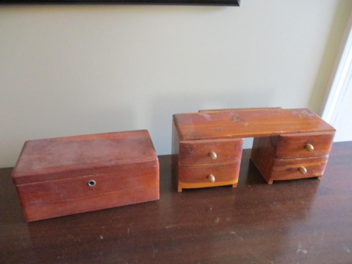 Lane Cedar Trinket Box and Wood Salesman Sample Desk