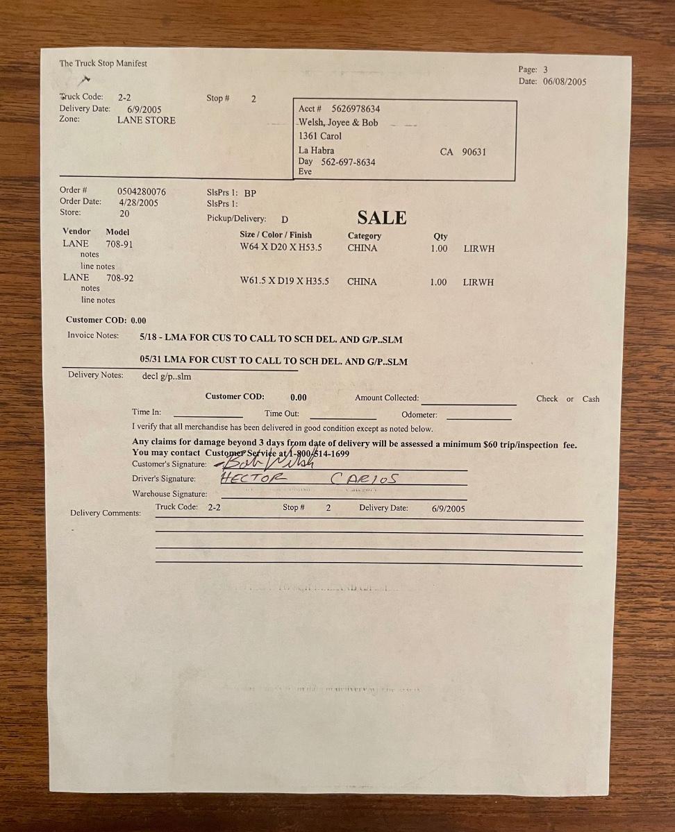 LARGE OR AWKWARD ITEM PICK-UP APPOINTMENTS: If you will be picking up something heavy or awkward you may be asked to follow us to or meet us at a nearby house instead of our warehouse in Brea, CA. If you purchased something that fits this description please text to be sure of appointment location. Also, you are responsible for bringing adequate number of people and equipment to handle the removal and transportation . Please be aware that there most likely will be at least a few steps involved, and/or small doorways, We reserve the right to refuse your pick-up if we feel it endangers the homeowner's property.. Please make note of deadline for pick-up below.