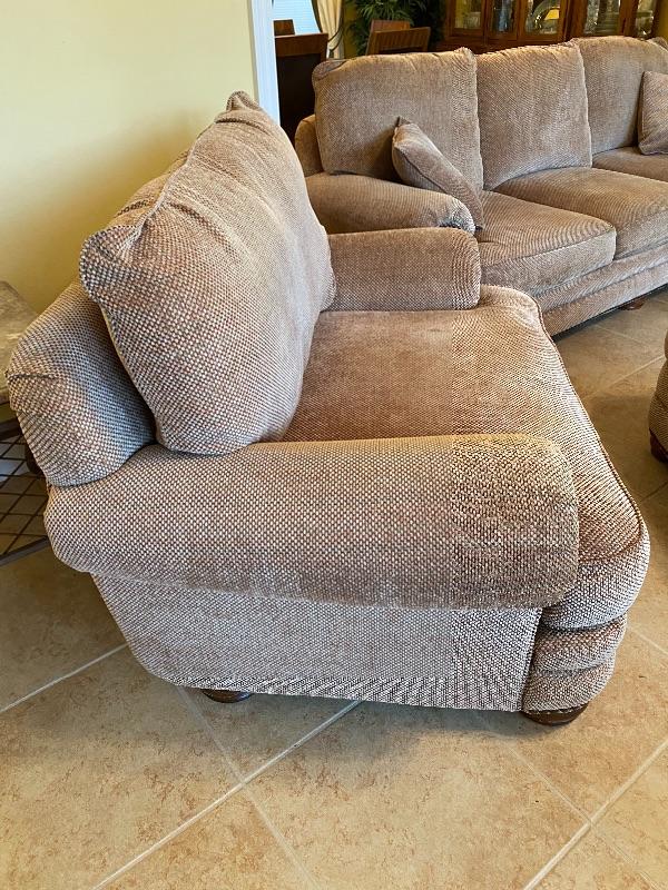 Lane Neutral Colored Couch & Matching Oversized Chair with Ottoman- Excellent