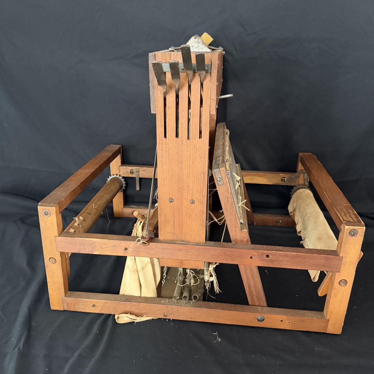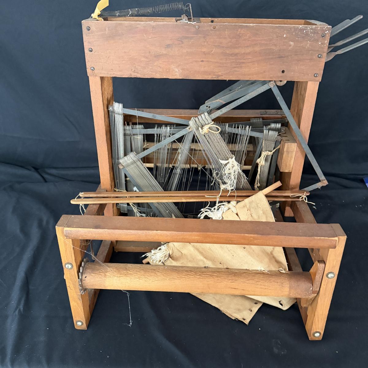 This Lane Looms tabletop weaving loom measures 16” x 22” x 20”H. Also includes six cone of yarn. See photos for what is included.