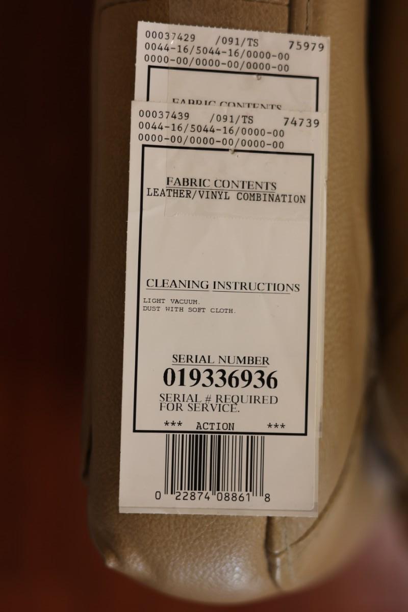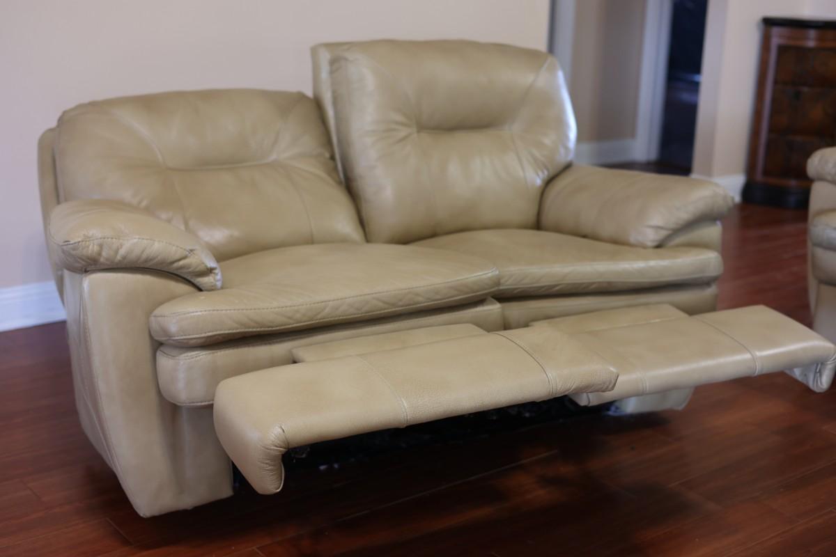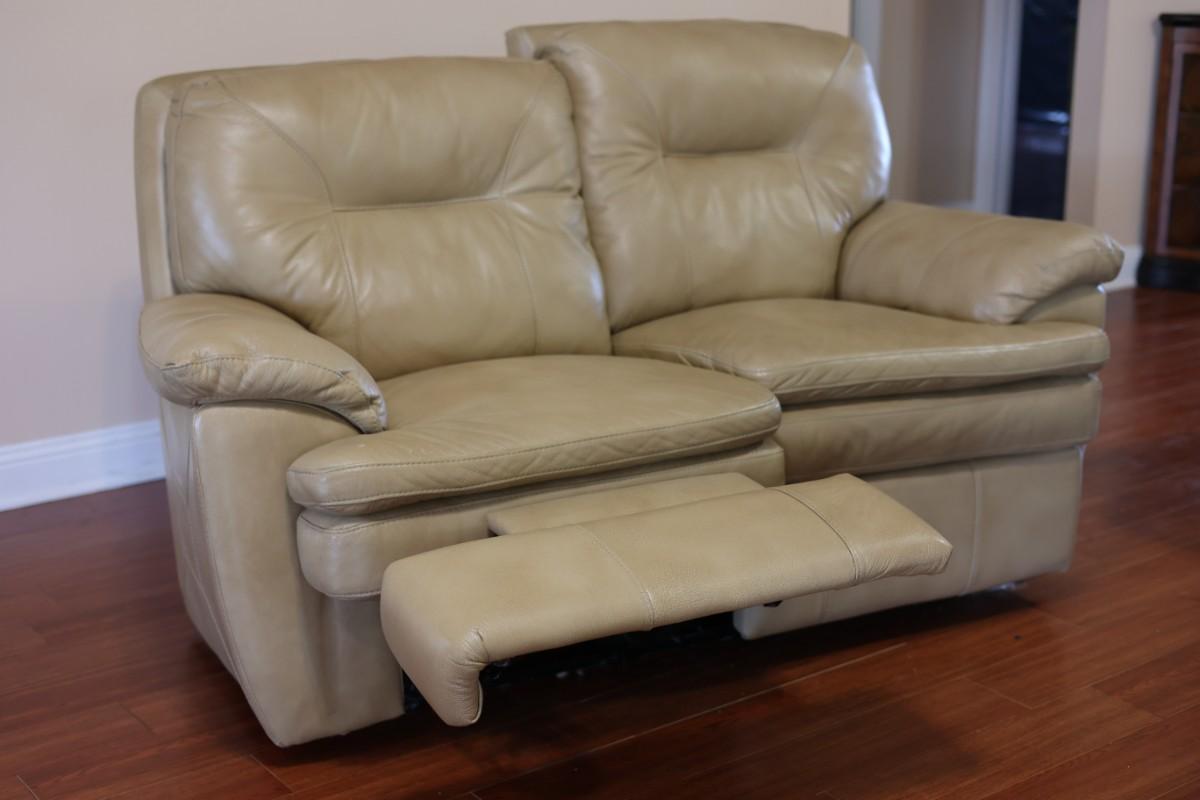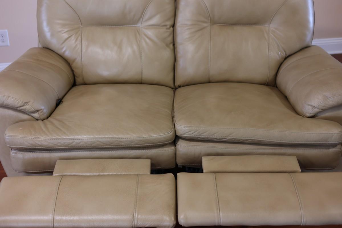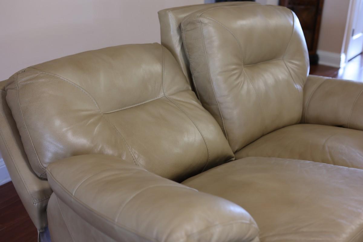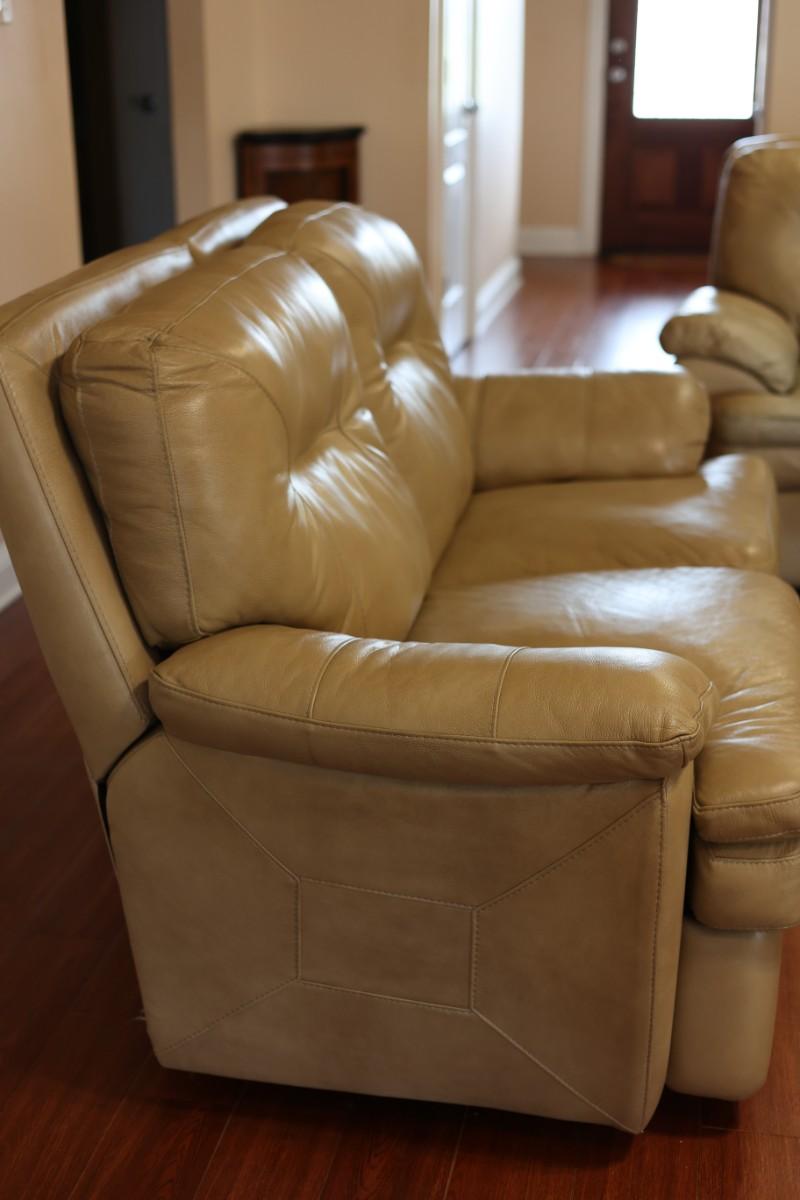 Recliner leather & vinyl comnbination love seat. Dimensions are in the pictures.