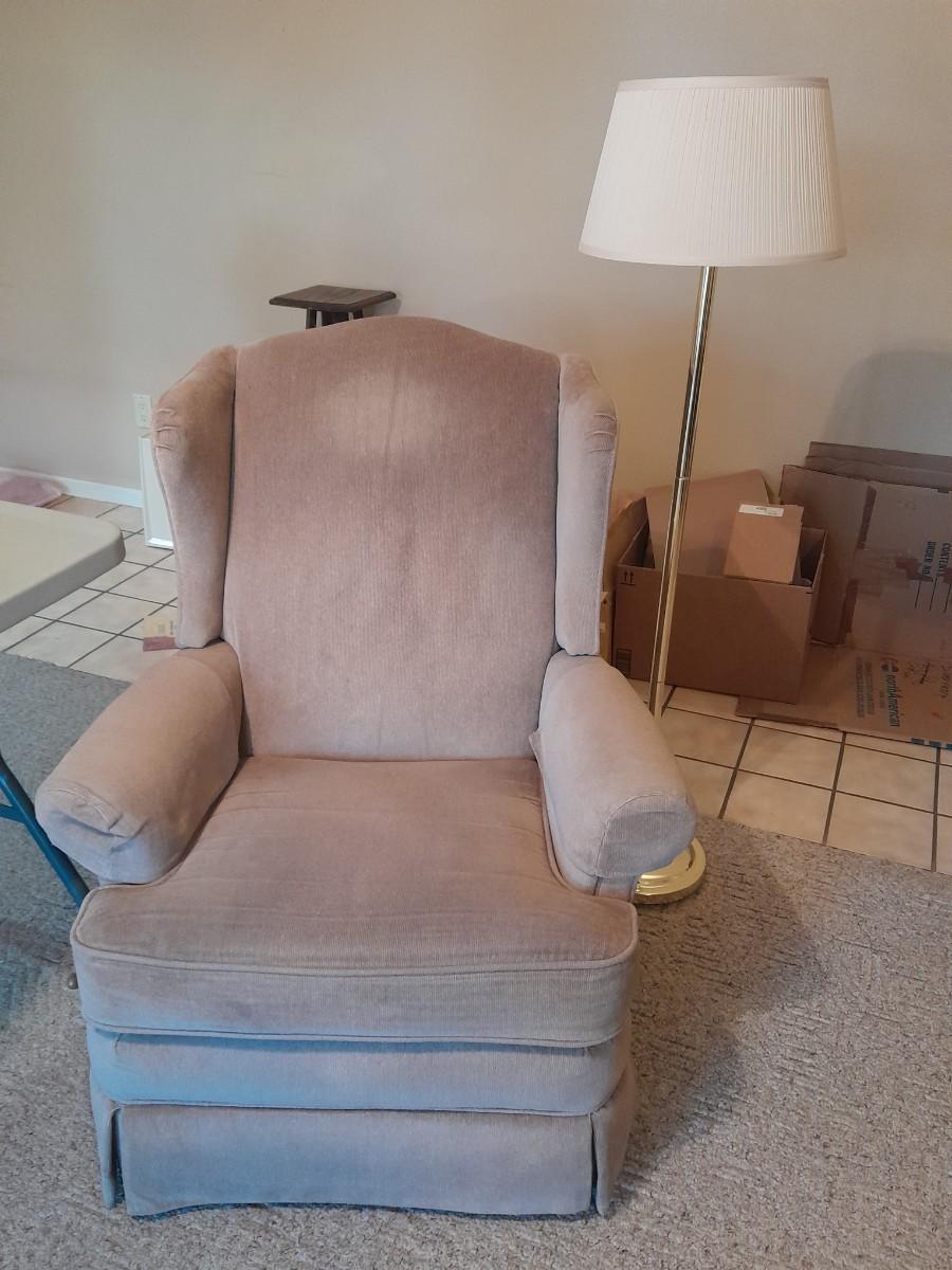 LANE RECLINER CHAIR 39" X 32" X 29" WITH 54" TALL FLOOR LAMP