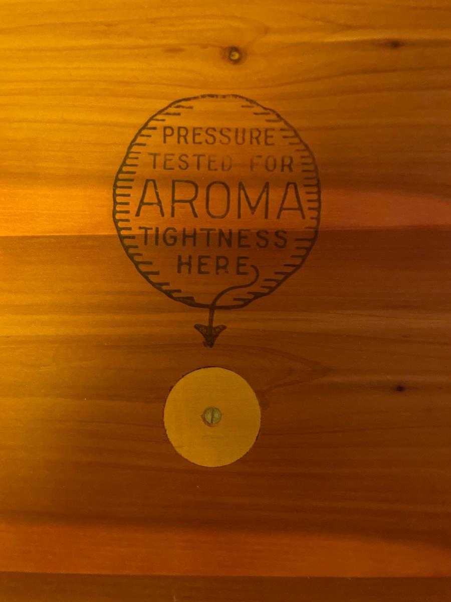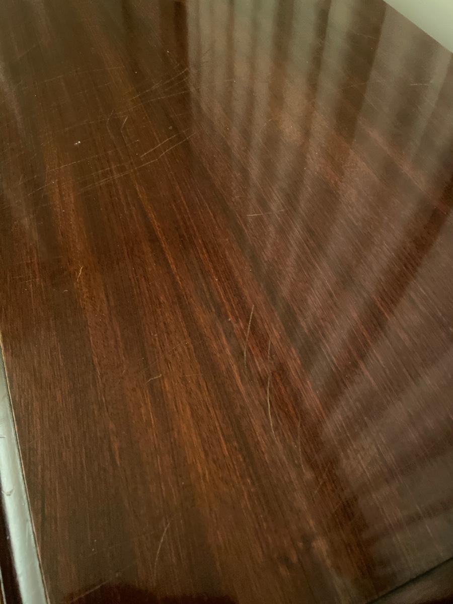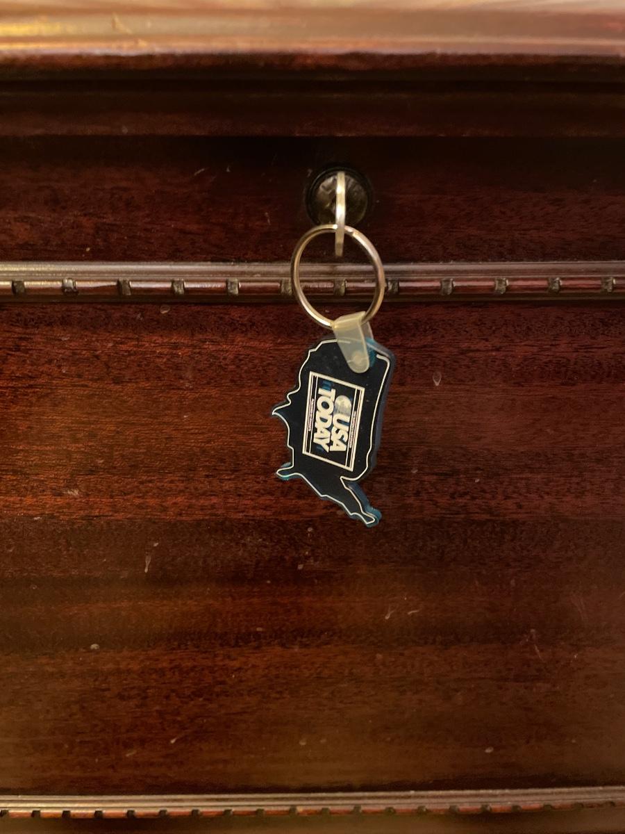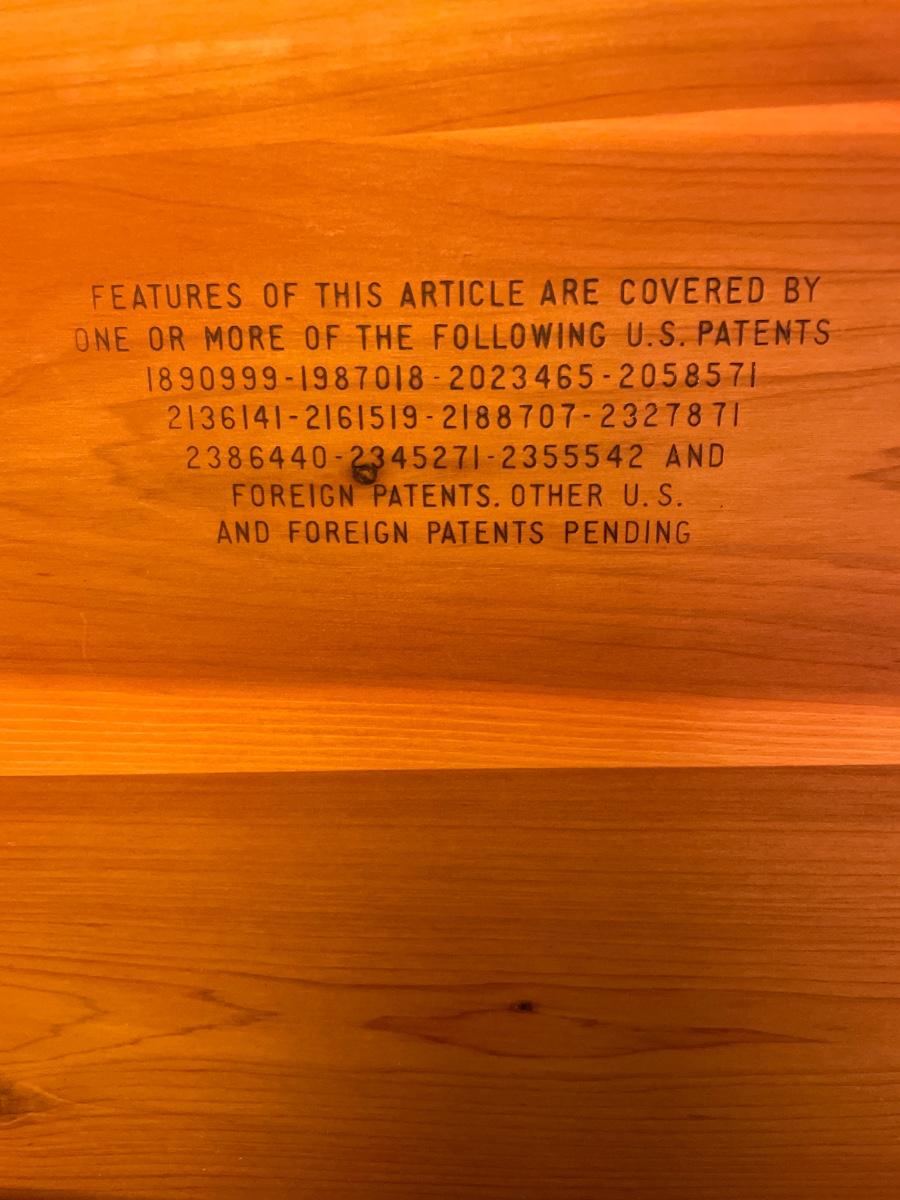 Has lock and key.There are some noticeable scratches on the lid and front side lower left. Dimensions are 48” long x 19” deep x 21” tall