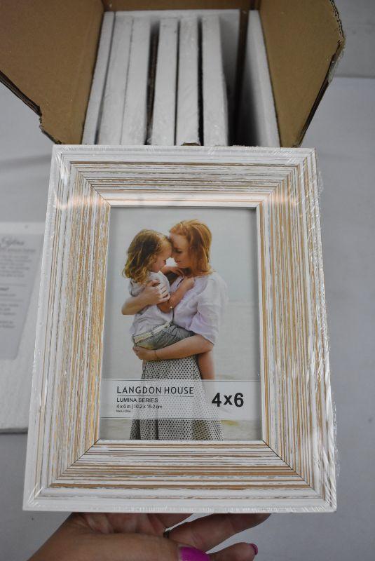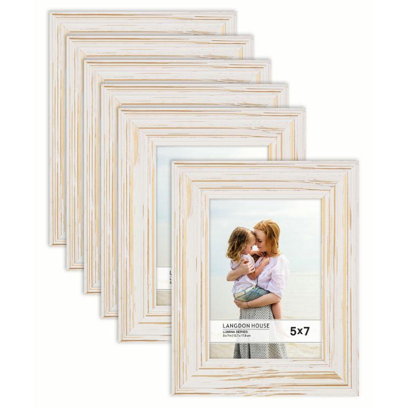Langdon House 4" x 6" White Real Wood Picture Frames with Gold Accents, 6 Pack, Lumina Collection - New