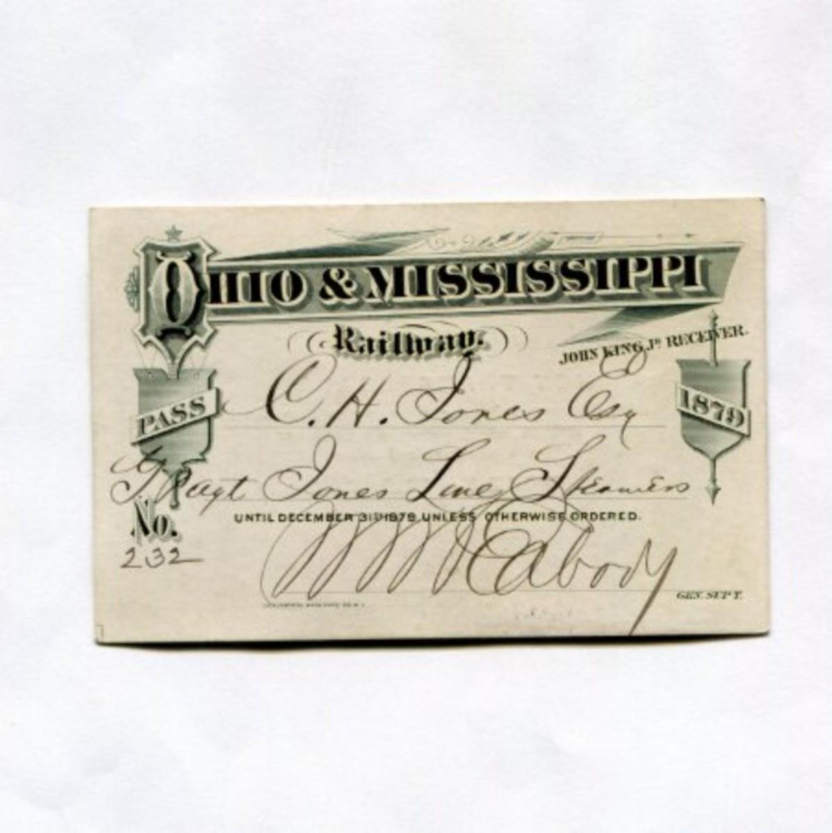 Railroad - 1879 Ohio & Mississippi Railway Pass