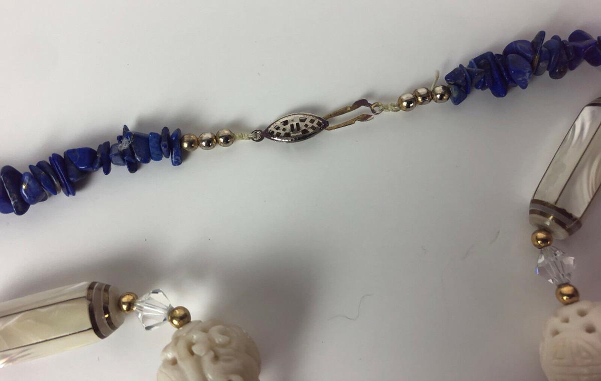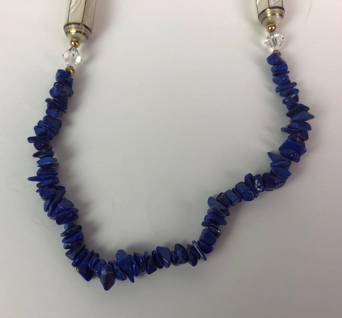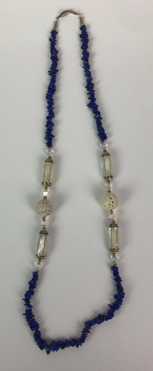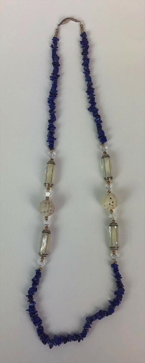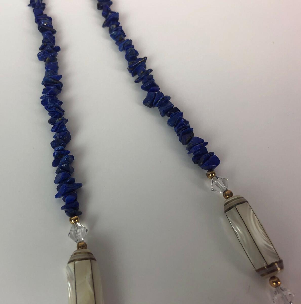 LAPIS JADE MOP GLASS BEAD NECKLACE