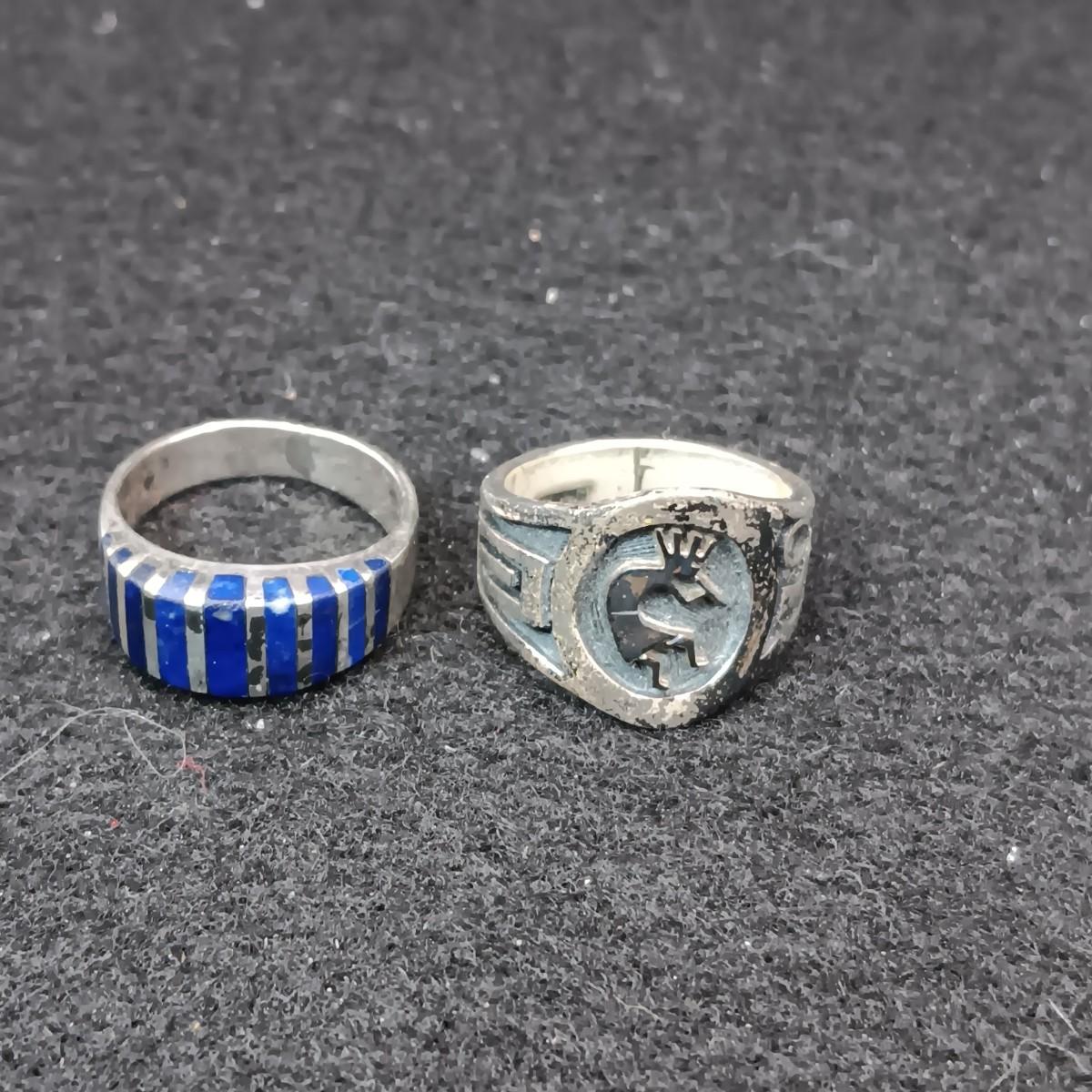 LAPIS LAZULI SET IN STERLING SILVER AND ANOTHER STERLING RING BOTH SIZE 4 1/2