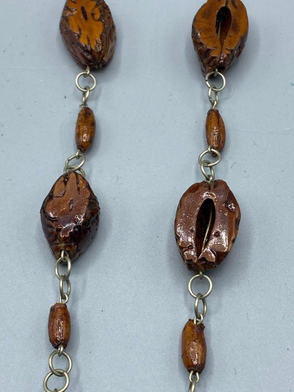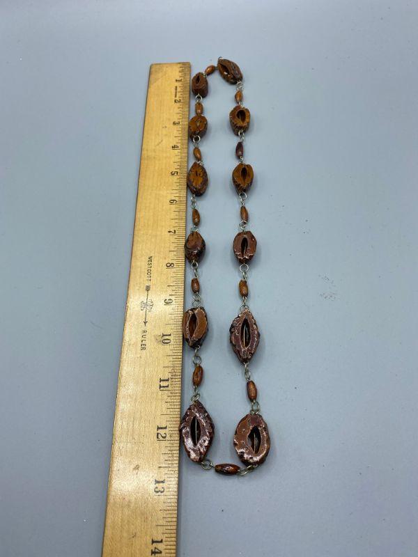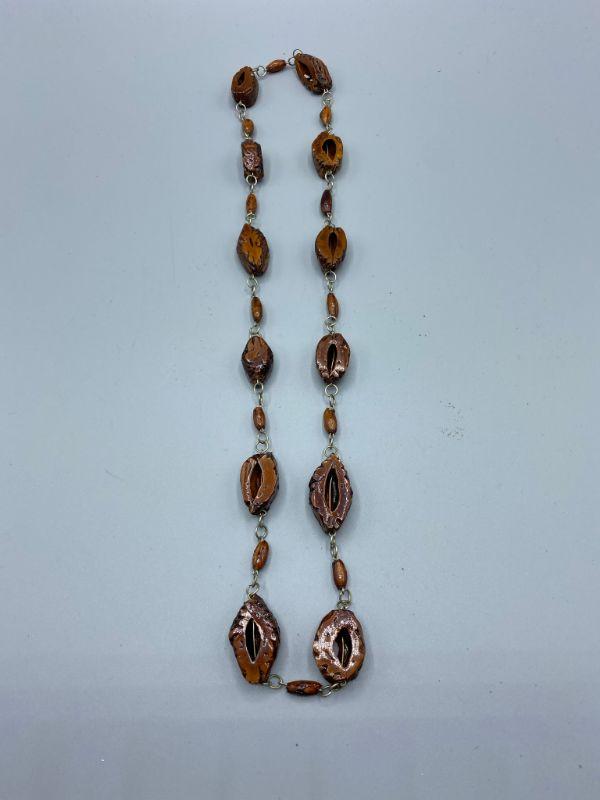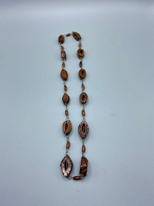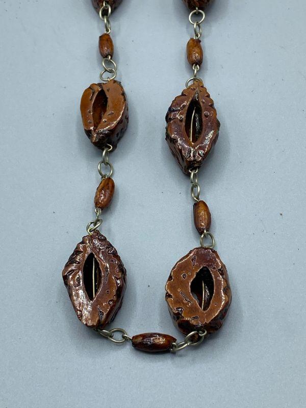 Vintage wood bead necklace. Wood pieces look similar to wood knots, some are kinda hollow in the center. Interesting piece of jewelry.