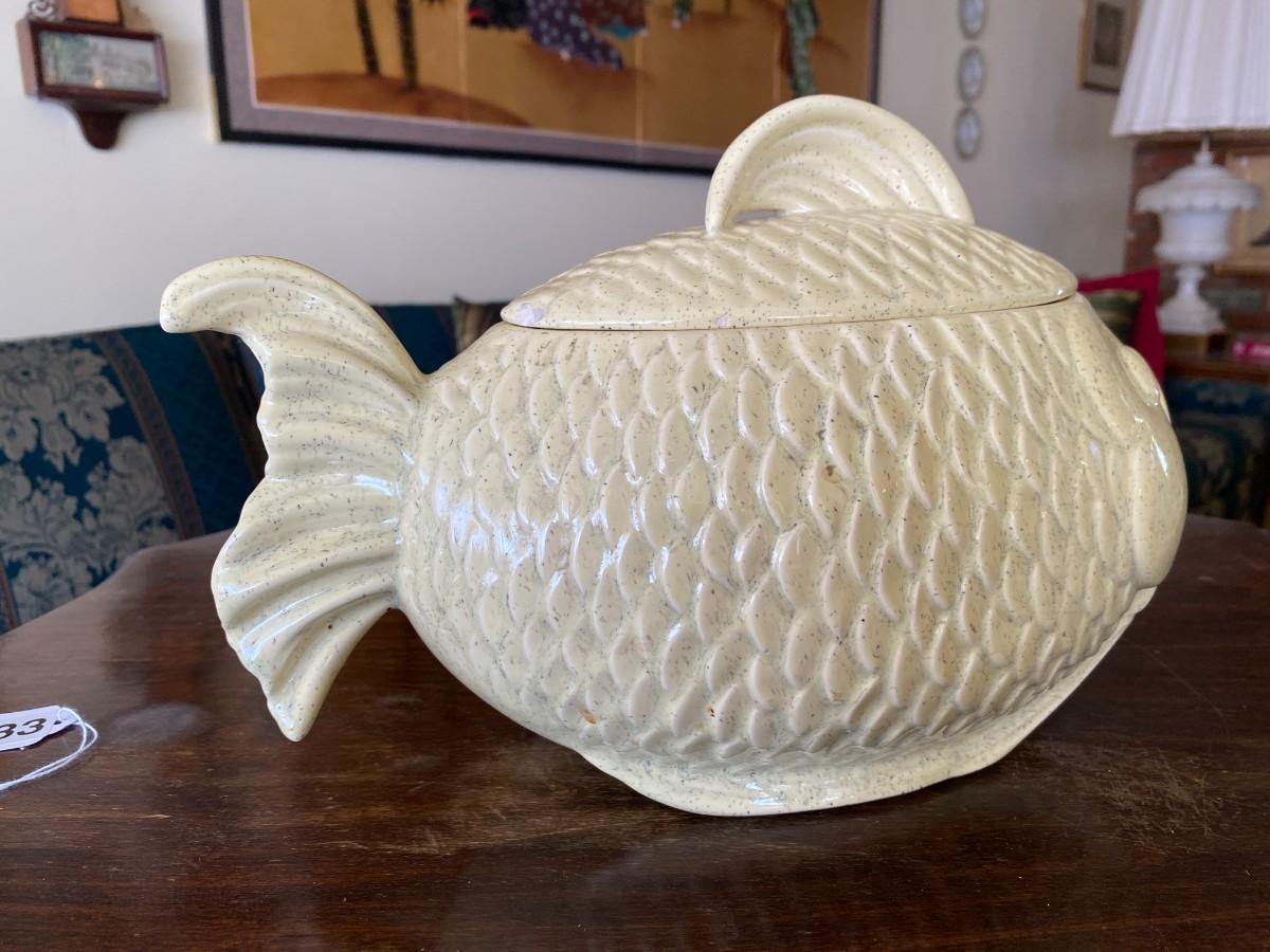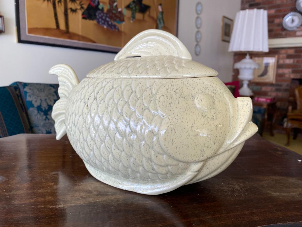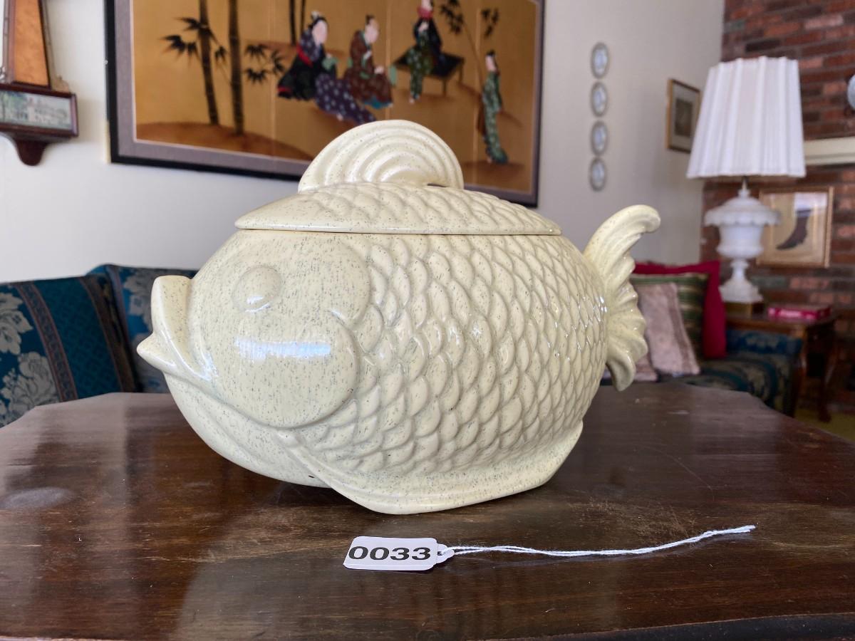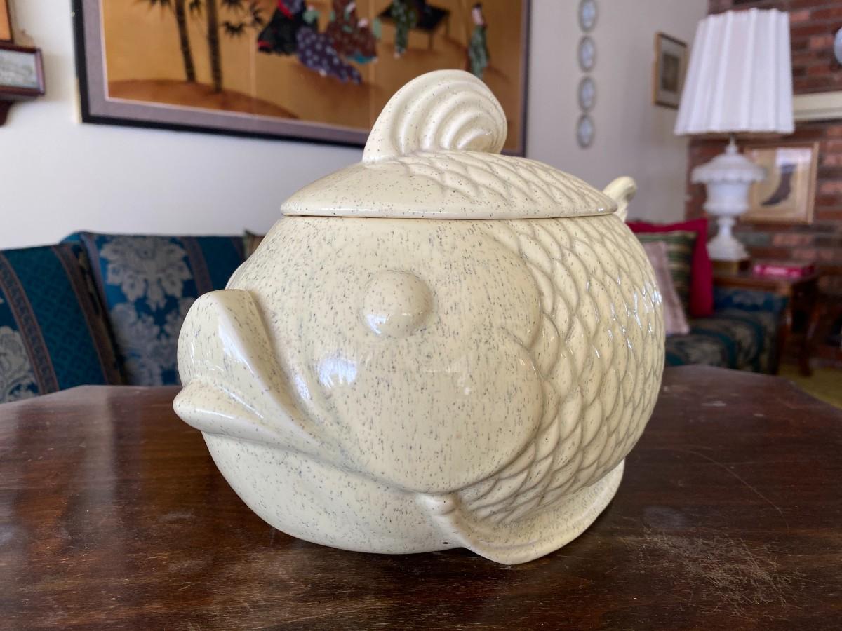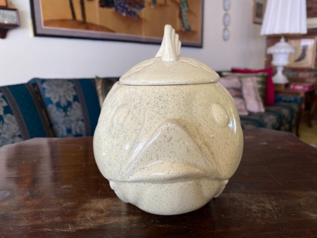 Midcentury Bauer Ceramic Fish Cookie Jar Vintage Yellow 821C