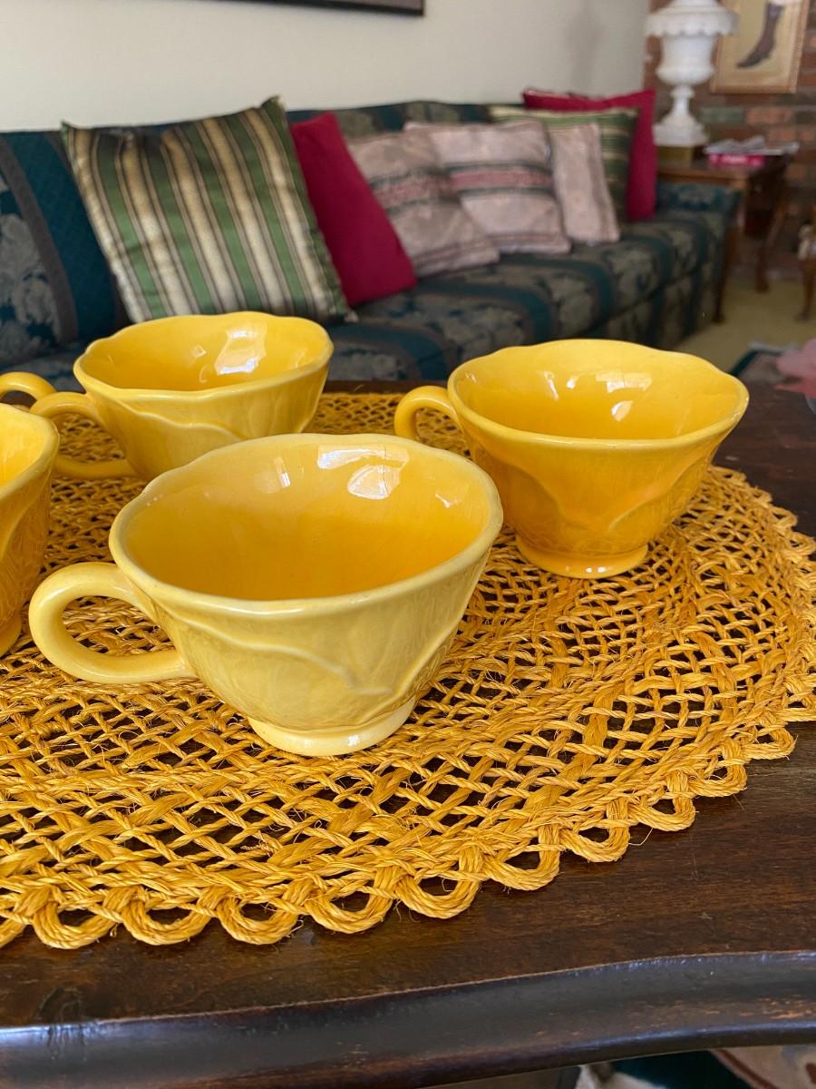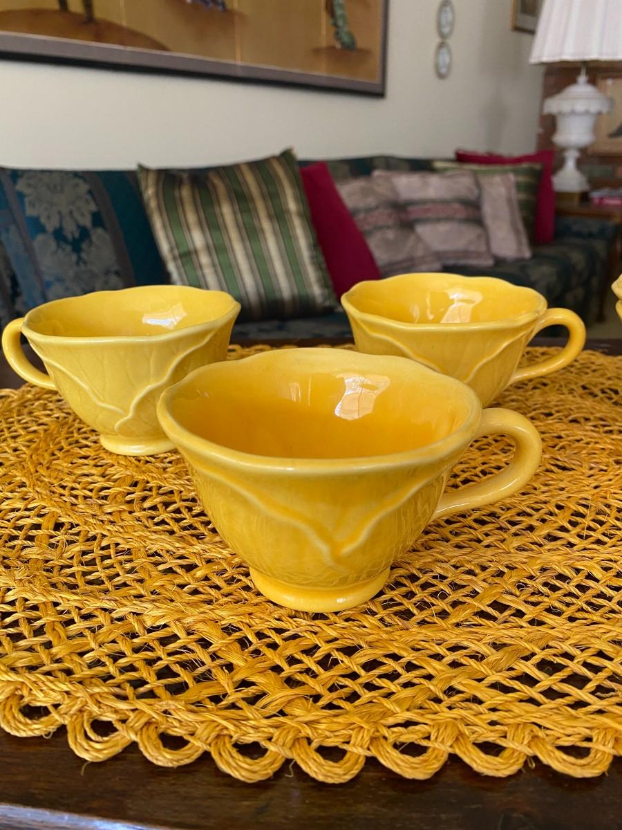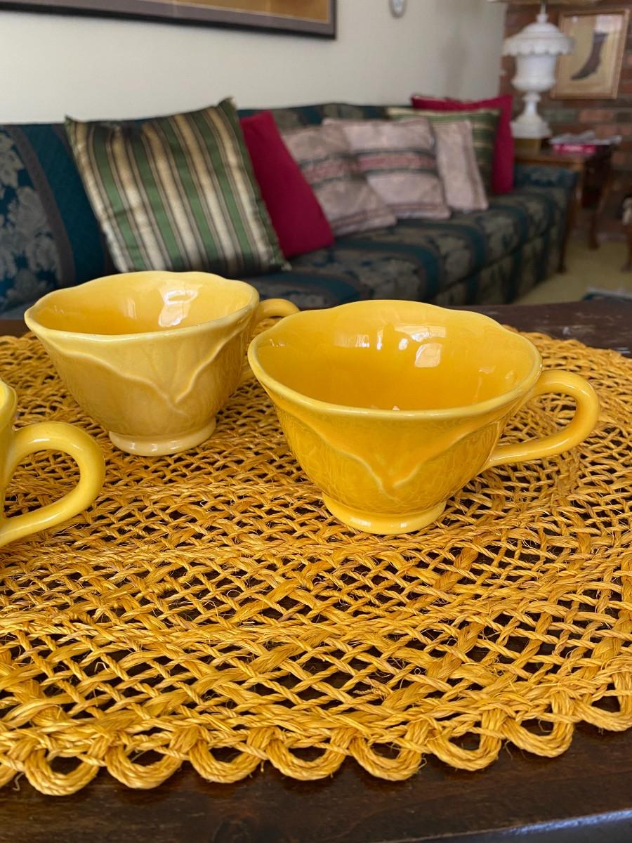 Vintage Metlox Yellow Coffee Cups Lotus Leaf Design