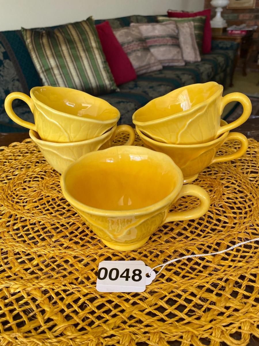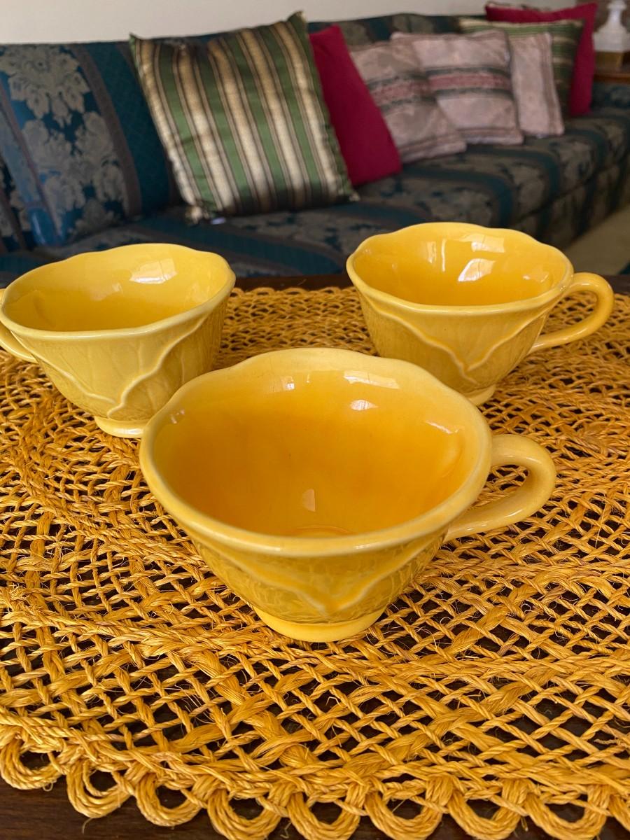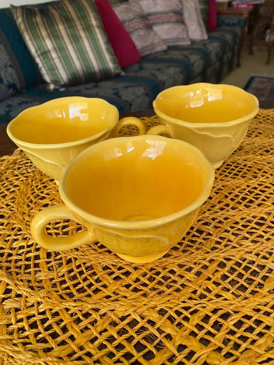 Vintage Metlox Yellow Coffee Cups Lotus Leaf Design