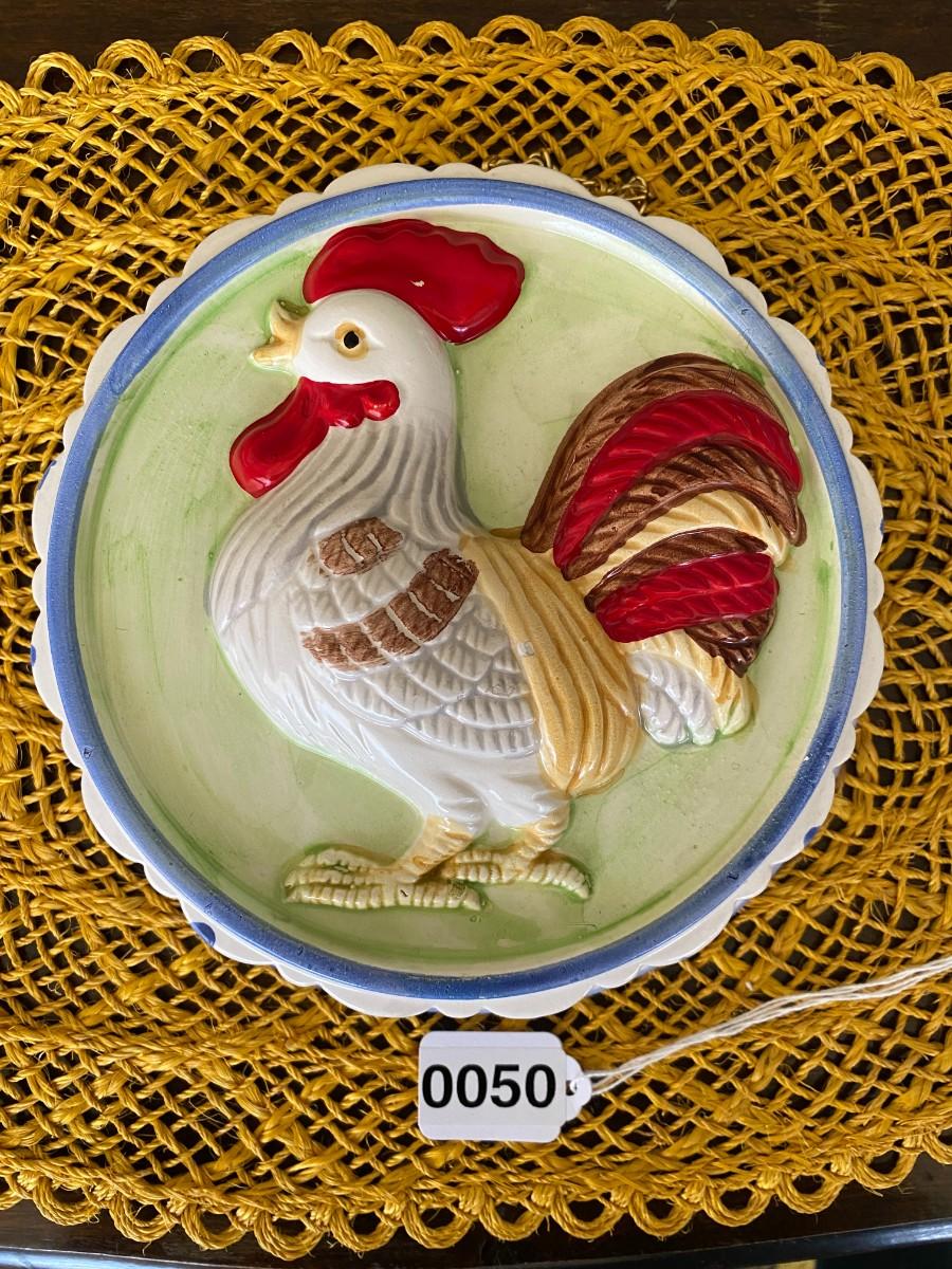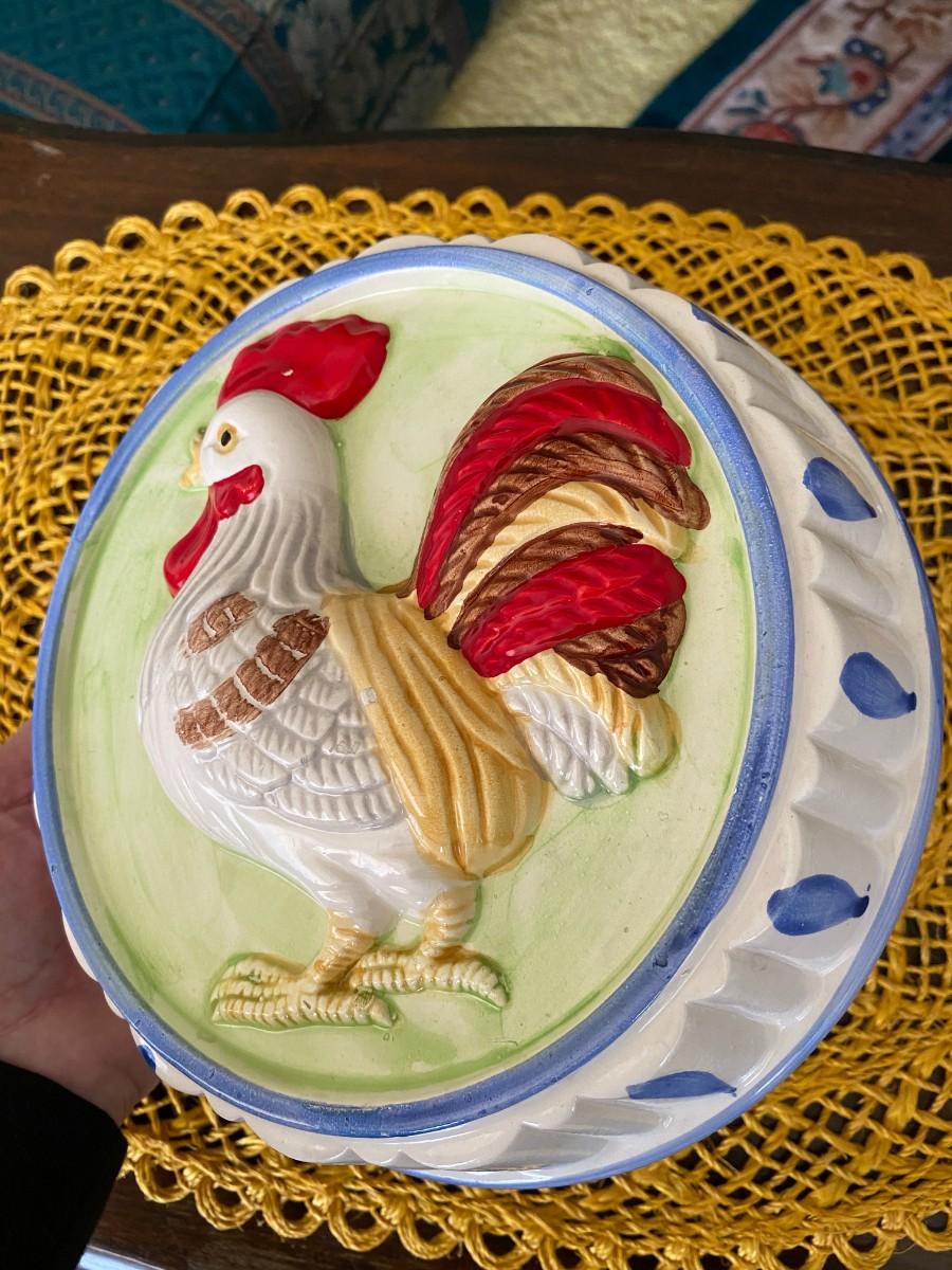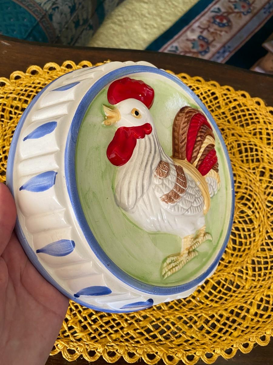Vintage Ceramic Rooster/Chicken Jello Mold & Wall Art