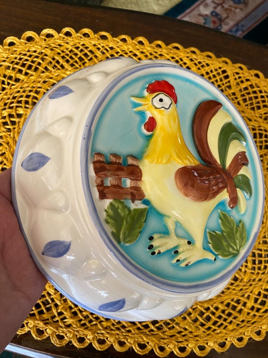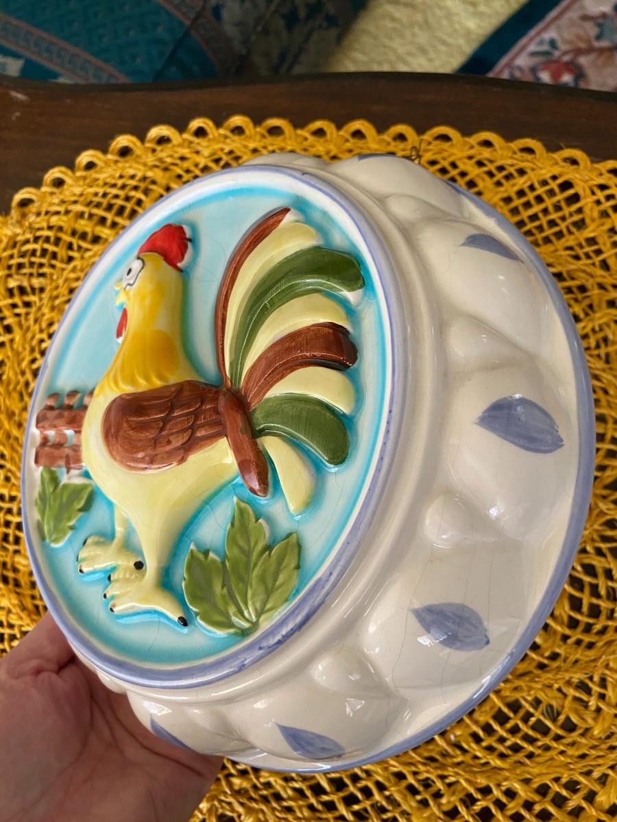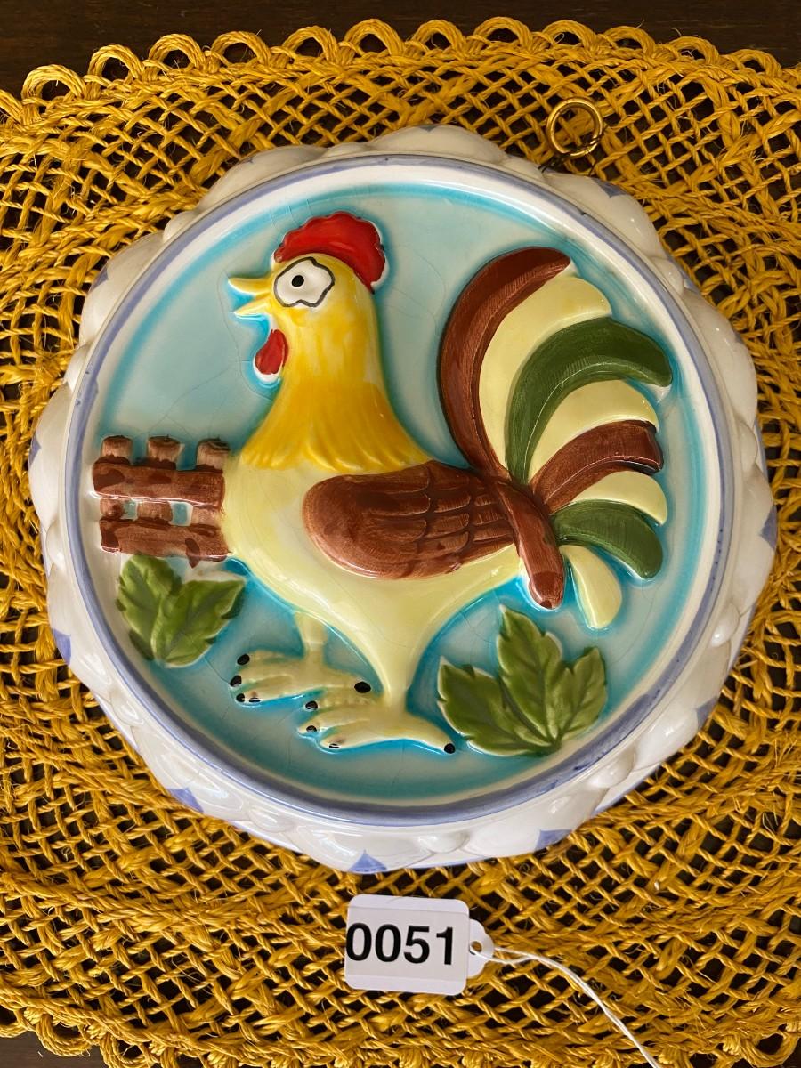Vintage Ceramic Rooster/Chicken Jello Mold & Wall Art