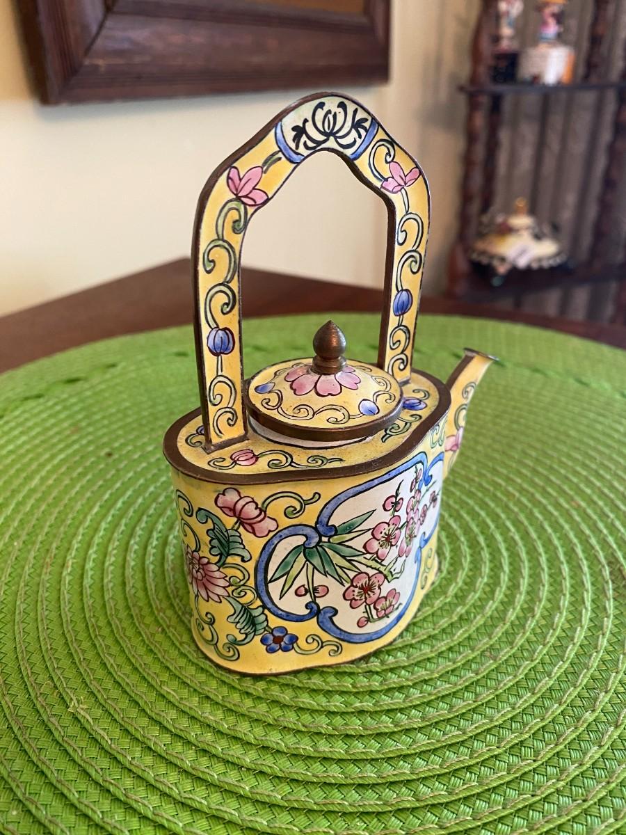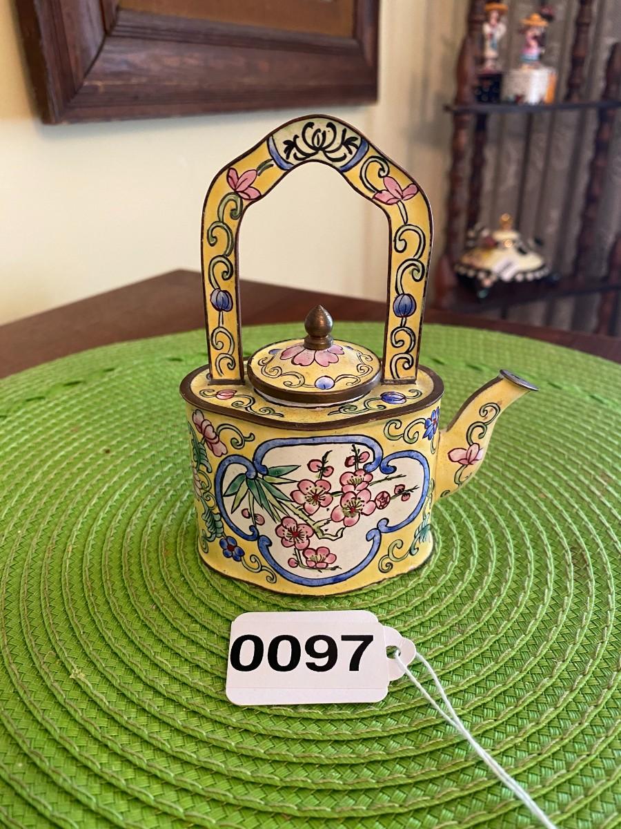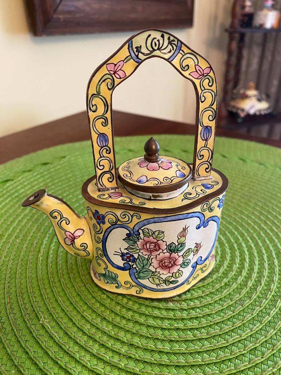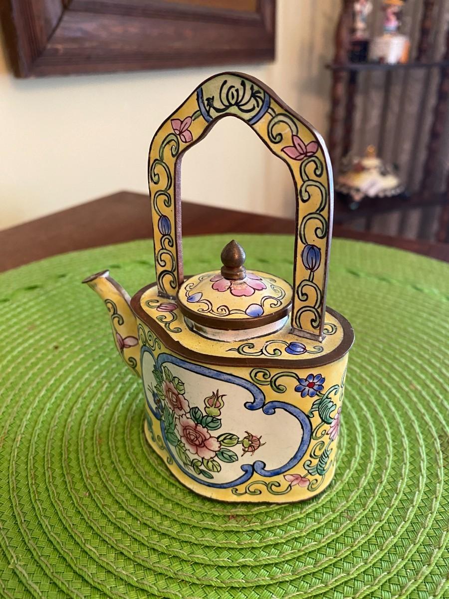 Kelvin Chen Enamel Teapot Yellow with Pink Peonies