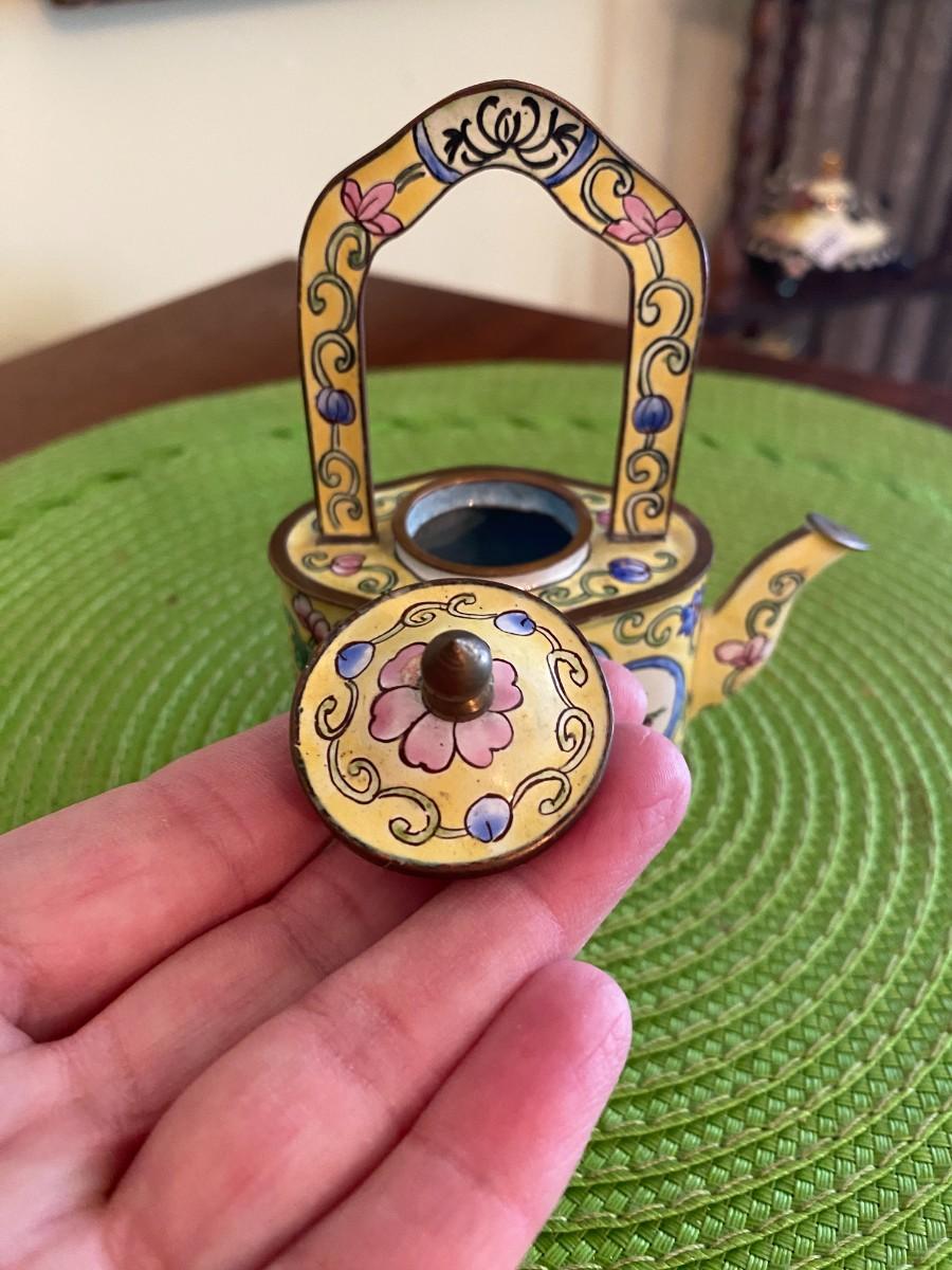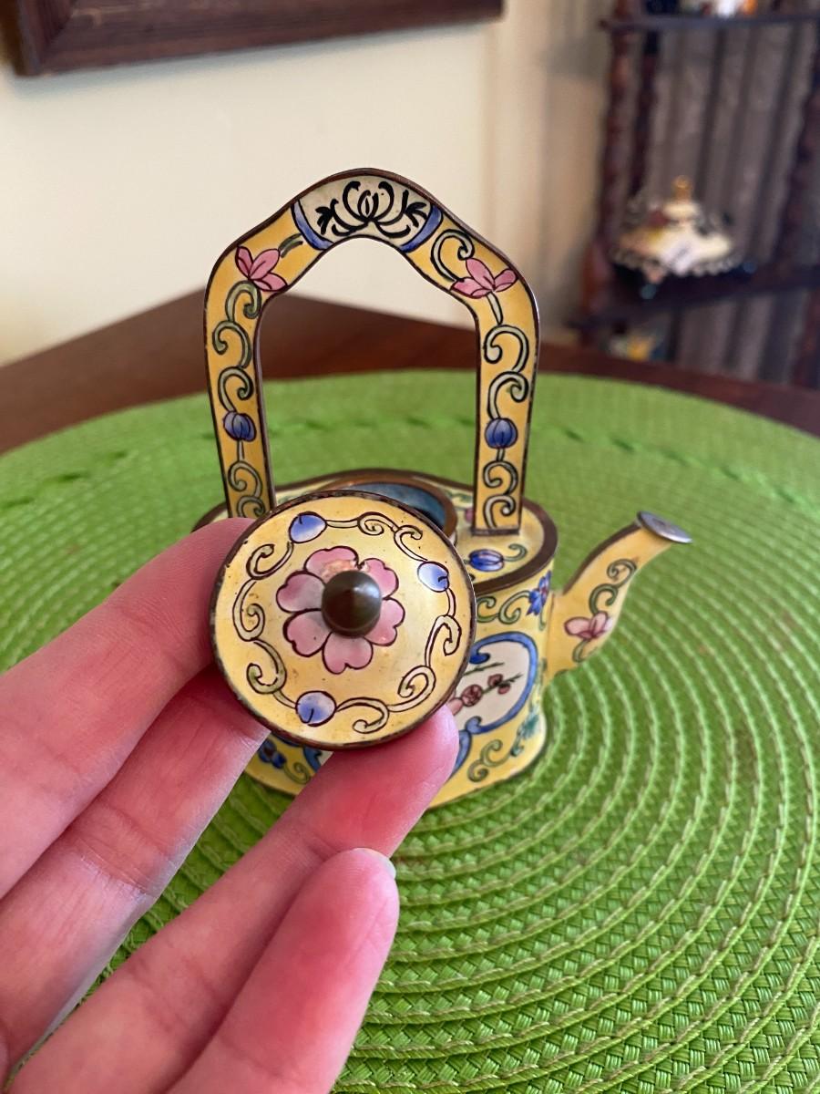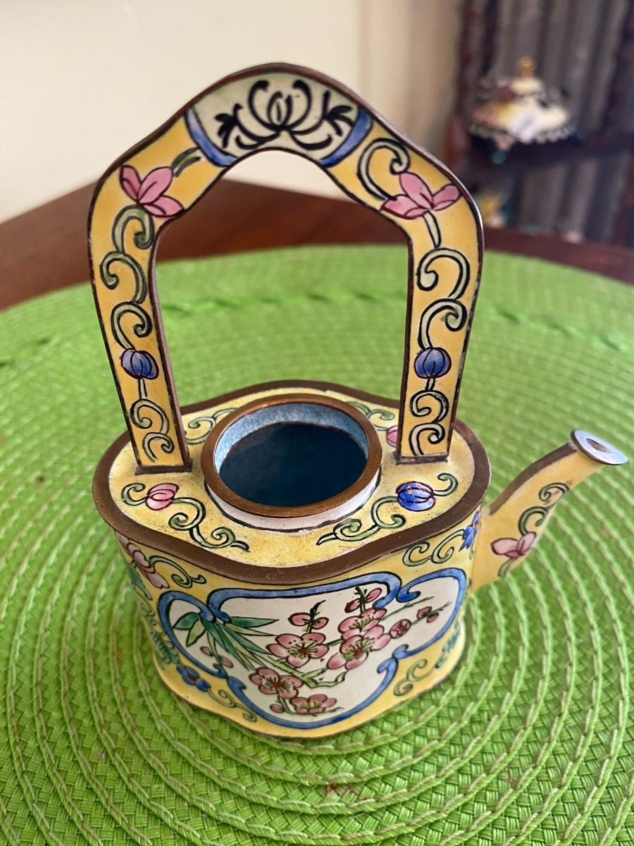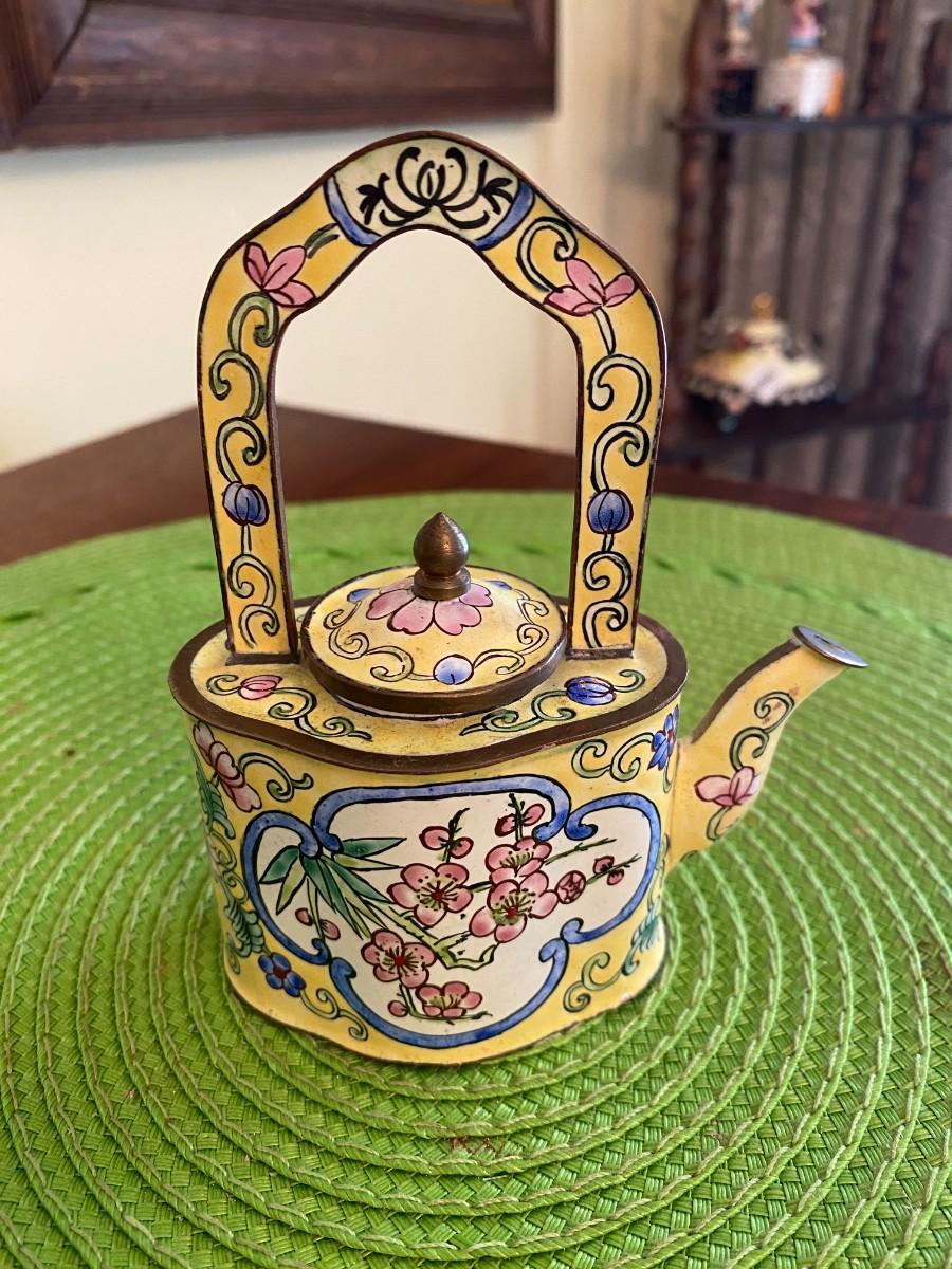 Kelvin Chen Enamel Teapot Yellow with Pink Peonies