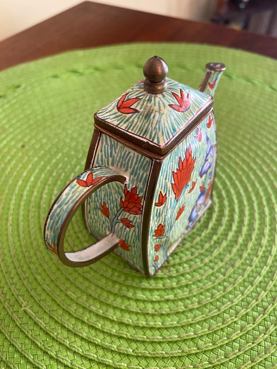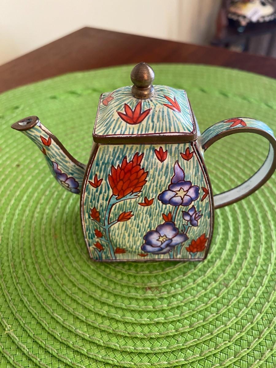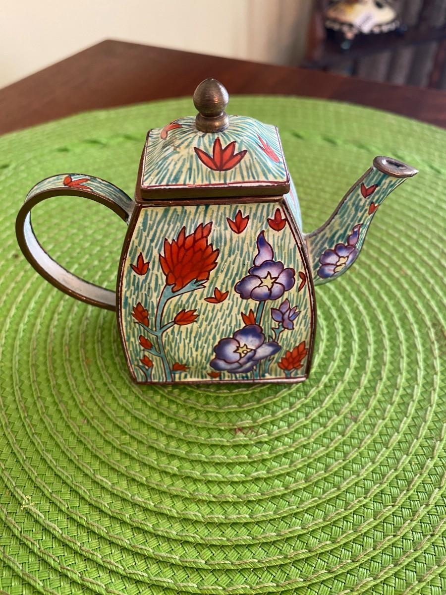 Cloisonne Miniature Teapot Red Ginger and Iris's